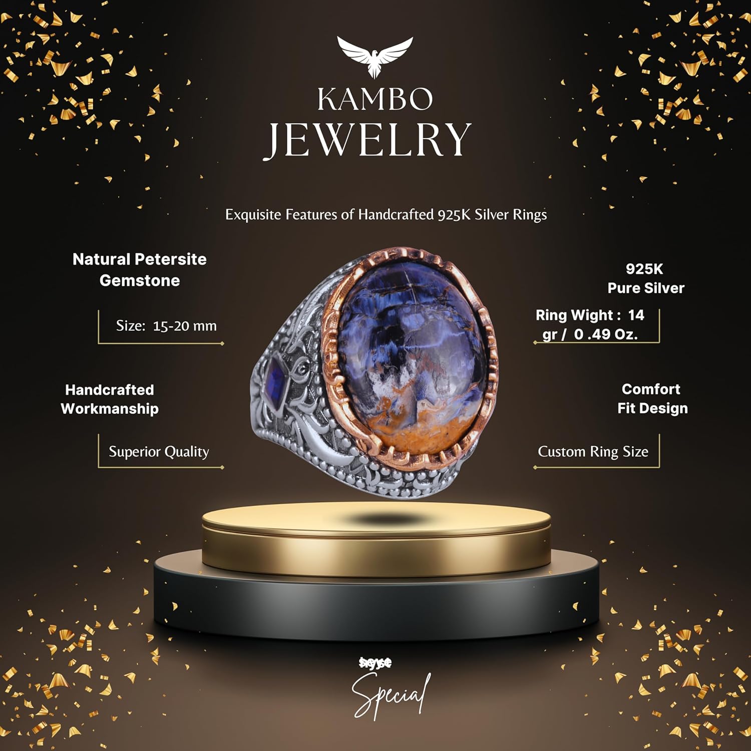 925 Ayar Gümüş Erkek Yüzük, Eşsiz El Yapımı Gümüş Yüzük, Kurt Yaban Hayatı Ağırlık: 11.93gr