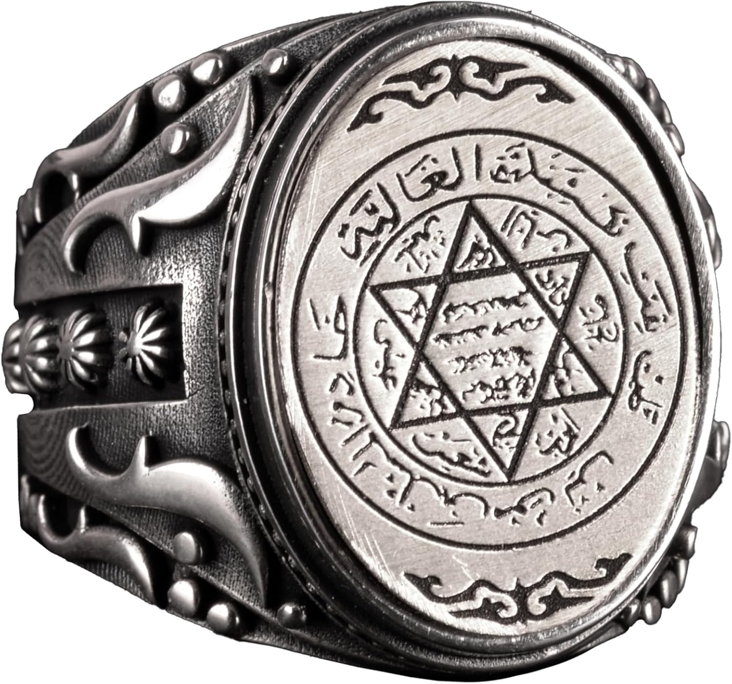 Kabbalah Yüzüğü, Davud’un Yıldızı Yüzüğü, Süleyman Mührü Yüzüğü, Erkek Sterlin Gümüş İslami Yüzük
