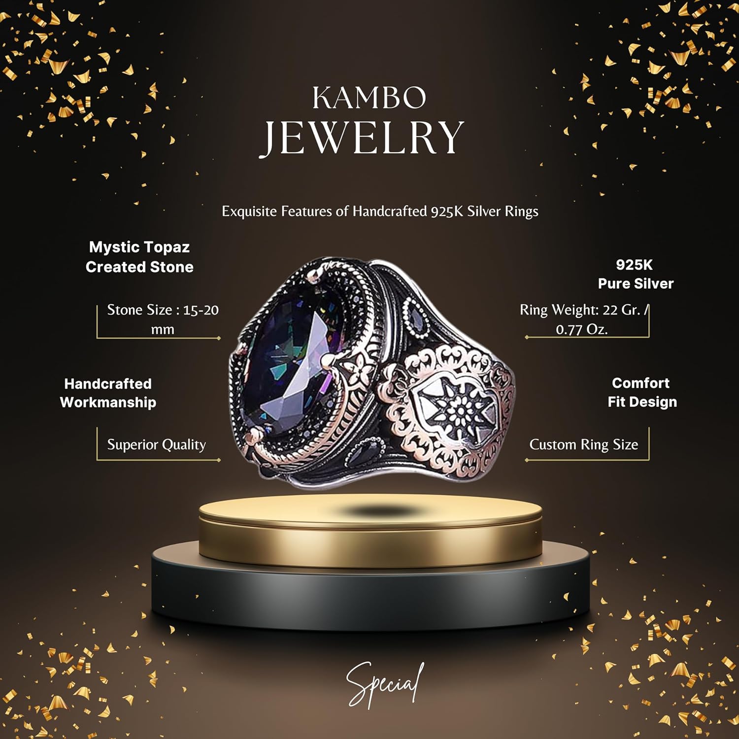 Her yüzük, yetenekli zanaatkarlar tarafından el yapımı olarak üretilir ve bu sayede hiçbir iki yüzük tam olarak aynı değildir. Bu eşsizlik, kılıç ve yakutun anlamlı sembolizmiyle birleşerek, gelenek ve bireyselliğe değer veren erkekler için mükemmel bir hediye yapar.