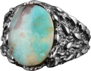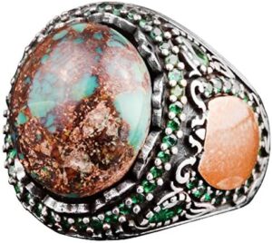 Gerçek Doğal Arizona Turkuaz Taş Yüzük, Minimalist Yüzük, 925 Ayar Gümüş Erkek Yüzük (Model-3)