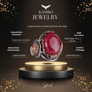 Doğal Yakut Taşlı Yüzük, Aslan Başlı Yüzük - 925 Ayar Gümüş Yüzük
