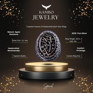 El Yapımı İslami Hat Sanatı Yüzük, Gerçek Ametist Taşı, 925 Ayar Gümüş Erkek Yüzük