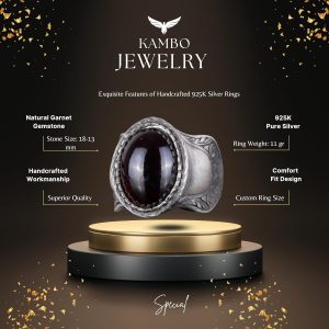 Doğal Taş Yüzük, 925 Ayar Gümüş Yüzük, Cabochon Garnet