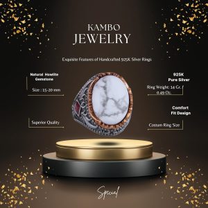Gerçek Doğal Taş Yüzük - El Yapımı 925 Ayar Gümüş Yüzük - El Yapımı Yüzük (Howlite)