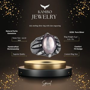 925 Ayar Gümüş Pençe Yüzük ile Gerçek Doğal Pirita Taşı – El Yapımı Yüzük ile Aslan Zenginliği ve Koruma
