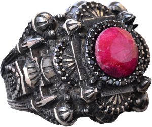 Erkekler için Lüks 925 Ayar Gümüş Yüzük - Yakut Taşlı - Zarif ve Görkemli Tasarım