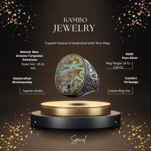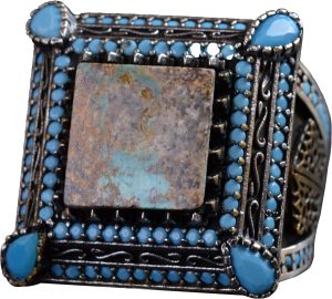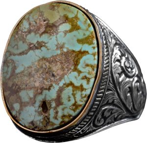 Doğal Turkuaz Taş Yüzük - Büyük Erkek Yüzüğü - 925 Ayar Gümüş Yüzük