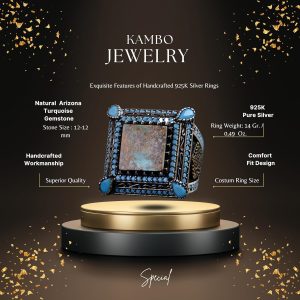 Doğal Turkuaz Taş Yüzük, Kare Tasarım - 925 Ayar Gümüş Erkek Yüzüğü, El Yapımı Şıklık