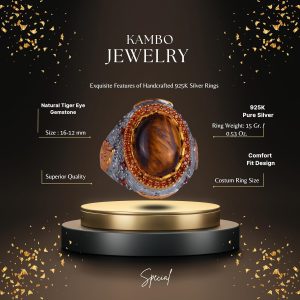 Gerçek Doğal Taş Yüzük - Sultan Yüzük - 925 Ayar Gümüş Yüzük (Kaplan Gözü)