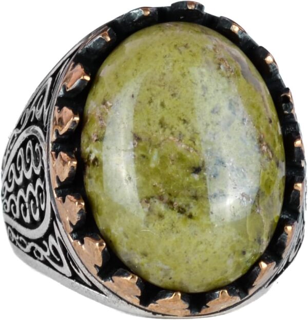 925 Ayar Katı Gümüş Erkek Yüzük, Doğal Taşlar ile - El Yapımı Şıklık (Unakite Taşı)