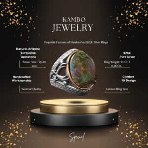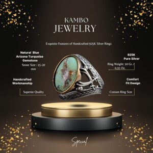 Gerçek Doğal Turkuaz Taşlı Gümüş Erkek Yüzüğü, Cesur Hamur Tasarımı