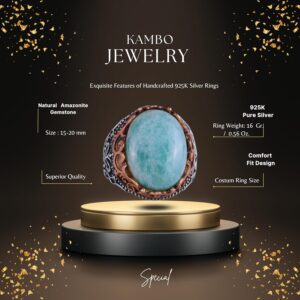 Gerçek Doğal Taş El Yapımı Yüzük - 925 Ayar Gümüş El Yapımı Yüzük - Şık Farklı Yüzük (Amazonit)