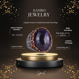 Gerçek Doğal Taş El Yapımı Yüzük - 925 Ayar Gümüş El Yapımı Yüzük - Şık Farklı Yüzük (Mavi Safir)