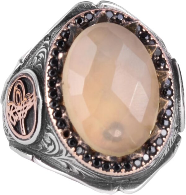 925 Ayar Gümüş Erkek Yüzük, Doğal Labradorit Taşı