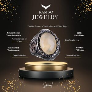 925 Ayar Katı Gümüş Erkek Yüzük - Doğal Limon Topaz Taşı ile El Yapımı Zarafet