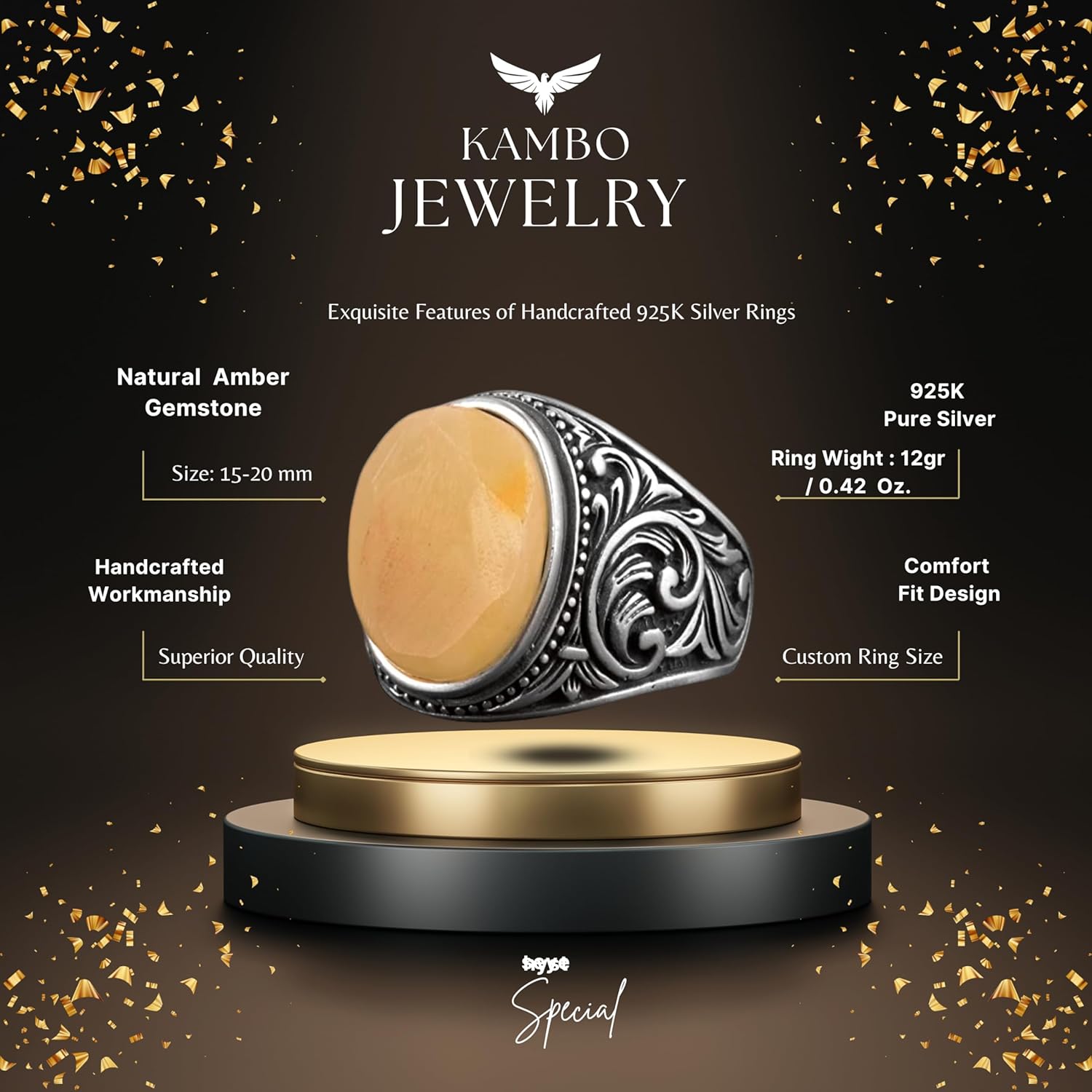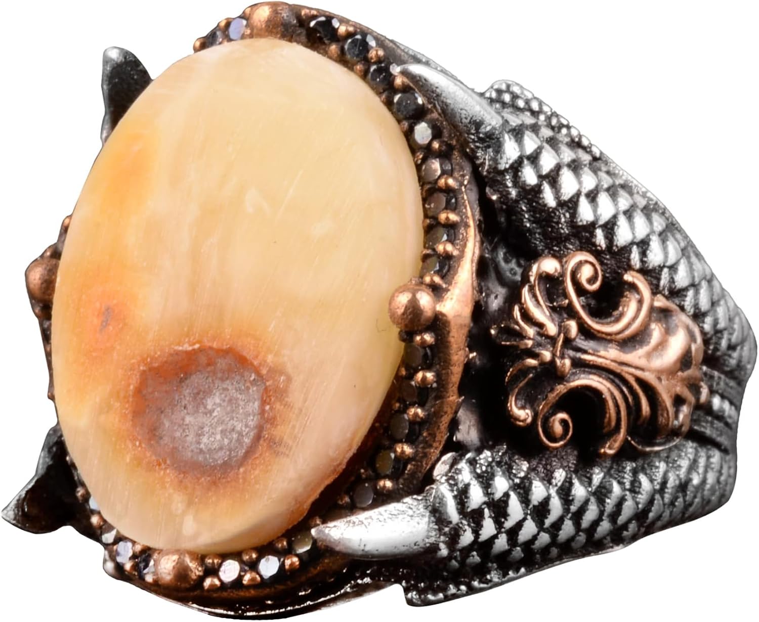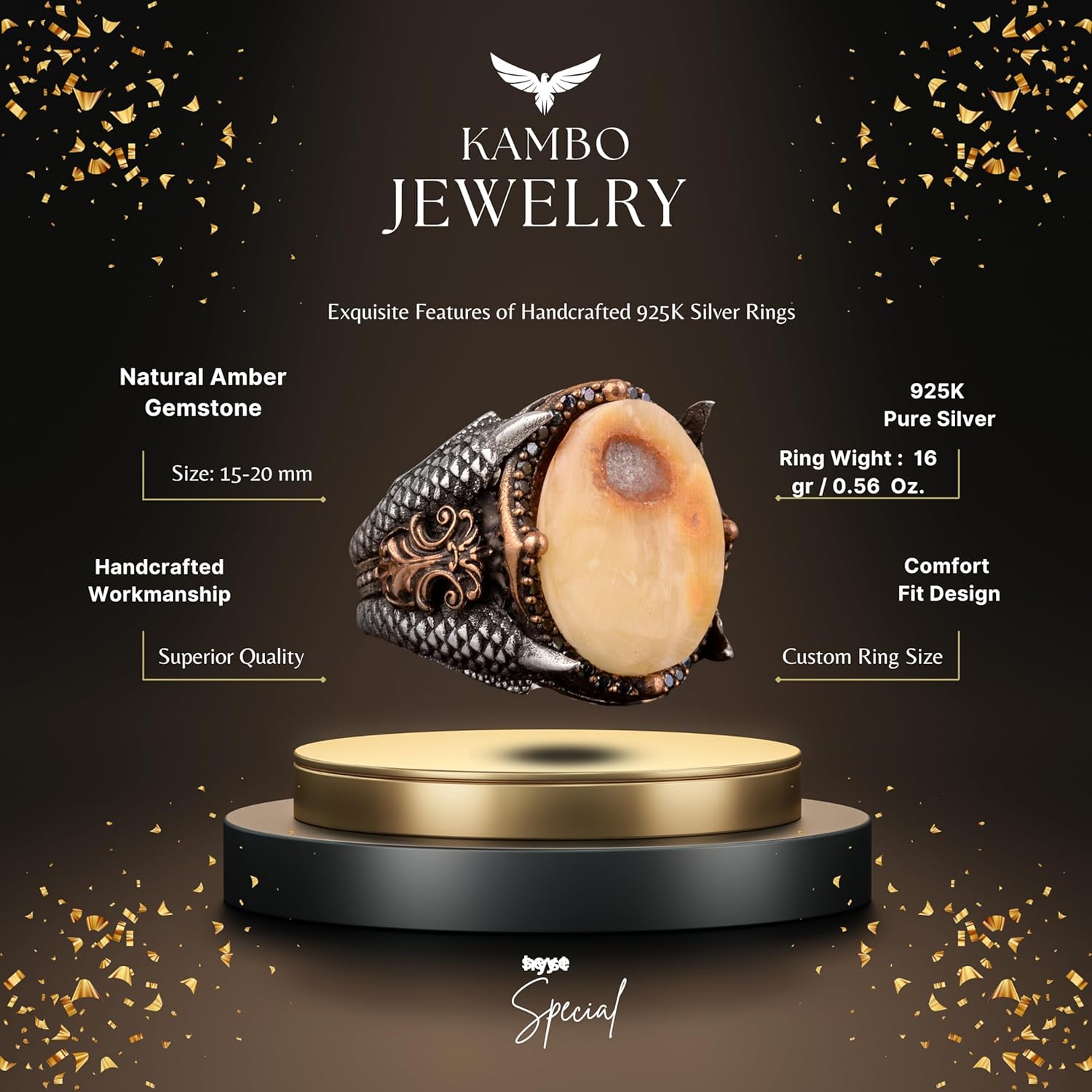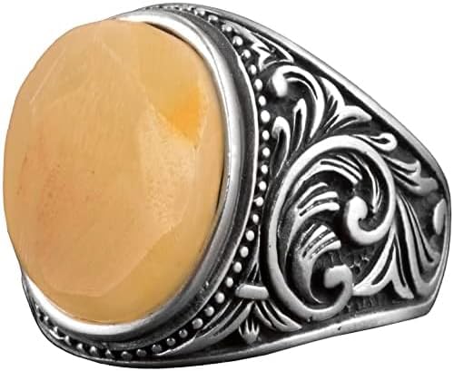 Gerçek Doğal Kehribar Taşlı Yüzük, Şahin Pençesi Yüzüğü, 925 Ayar Gümüş Yüzük Erkekler İçin
