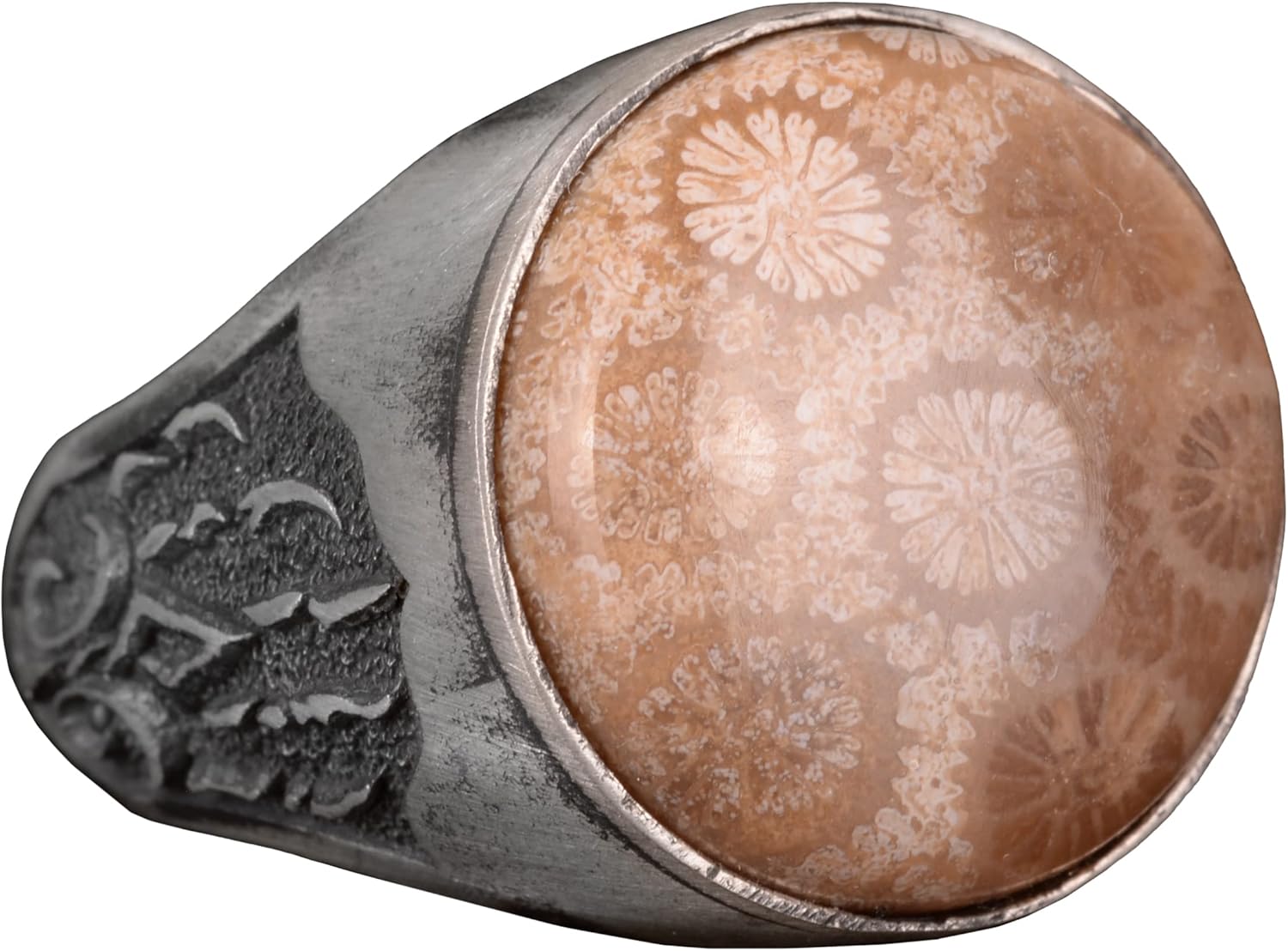 Gerçek Doğal Mercan Taşı Erkek Yüzük, 925 Ayar Gümüş Yüzük, El Yapımı Yüzük, İslami Yüzük