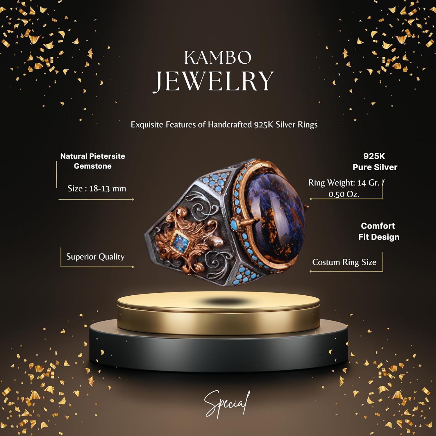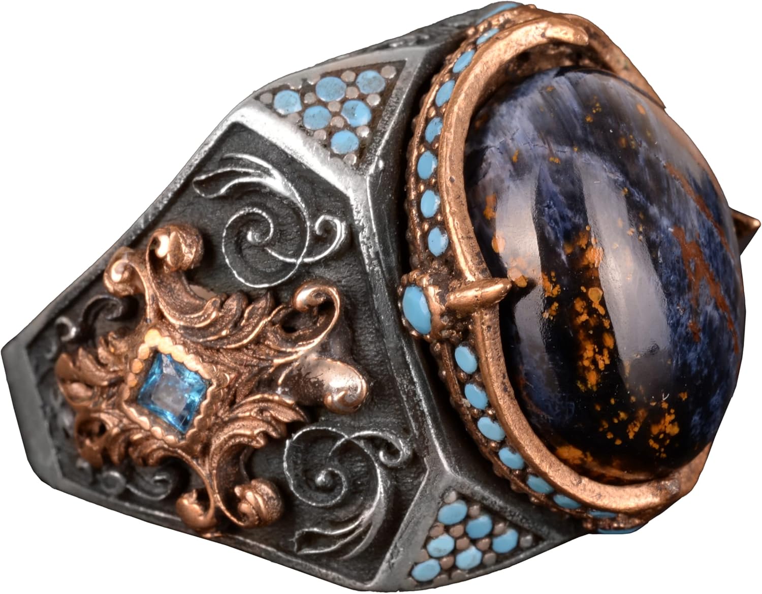 Gerçek Doğal Pietersite Taşlı Yüzük, El Yapımı Yüzük, 925 Ayar Gümüş Yüzük Erkekler İçin