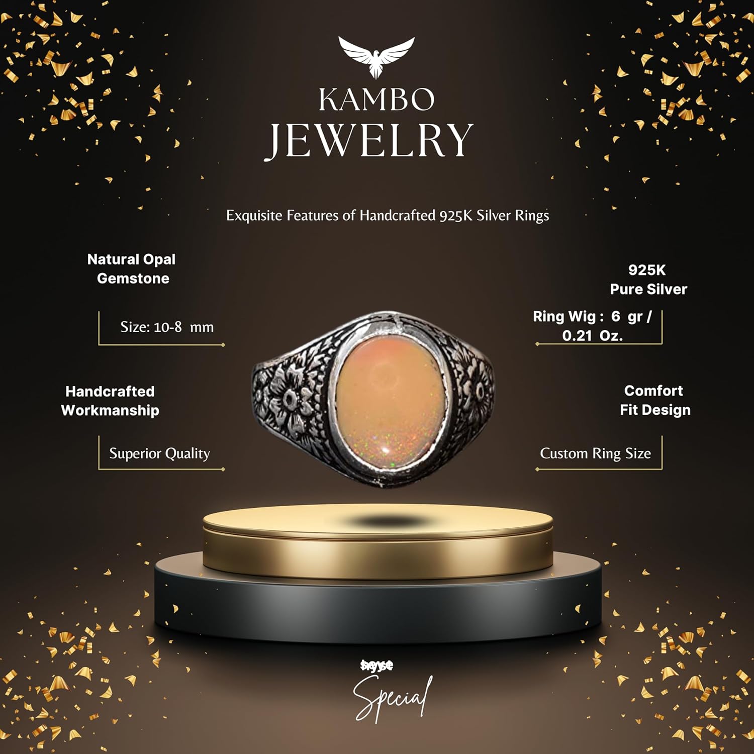 Gerçek Doğal Opal Taşı Yüzük, Erkekler İçin Gümüş Yüzük, El Yapımı Yüzük, 925 Ayar Gümüş Erkek Yüzüğü