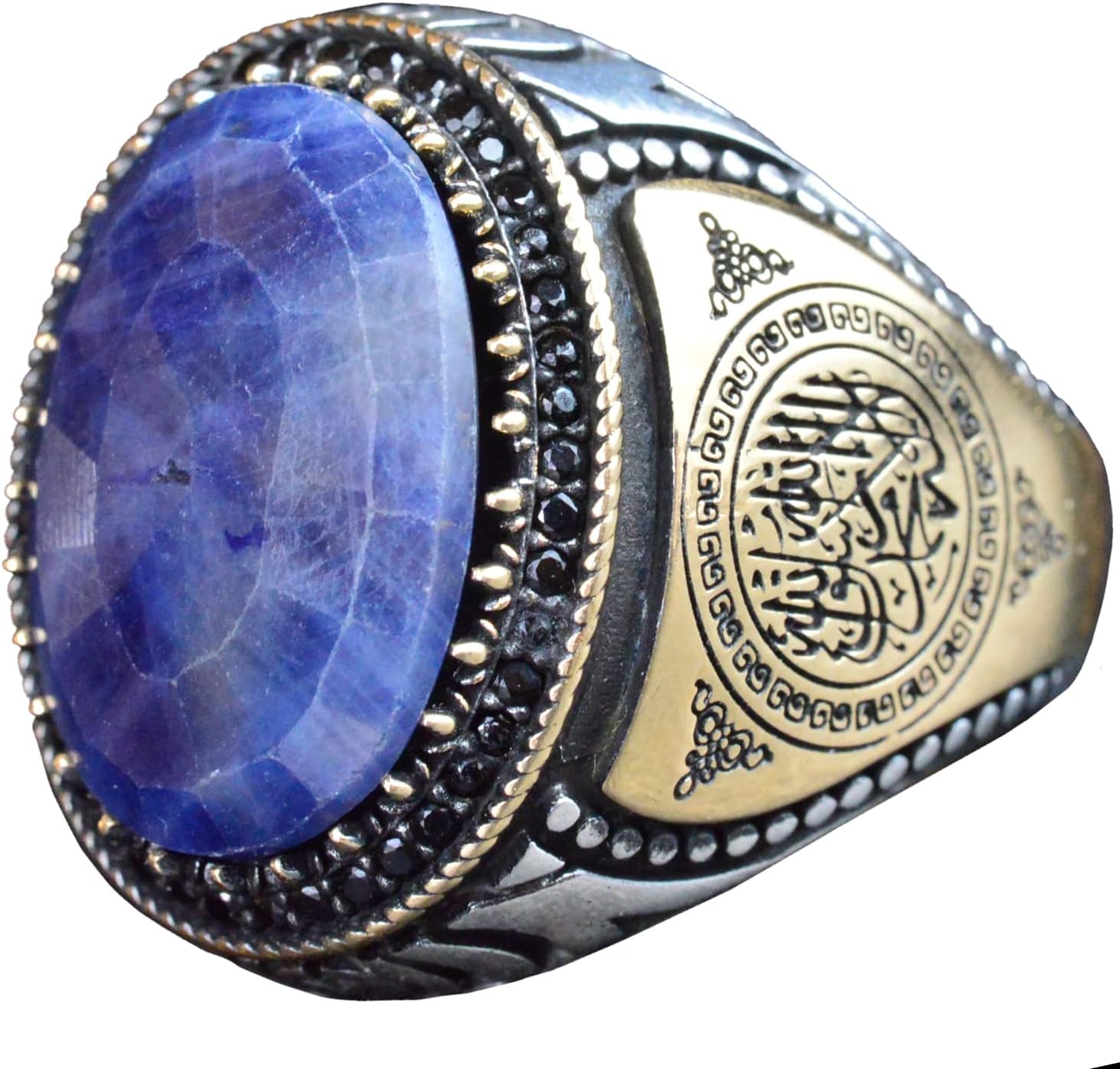 Gerçek Doğal Safir Erkek Yüzük, 925 Ayar Gümüş Yüzük, 15.90 Karat, Taşlı Erkek Yüzük, İslami Yüzük, Gümüş Erkek Takısı