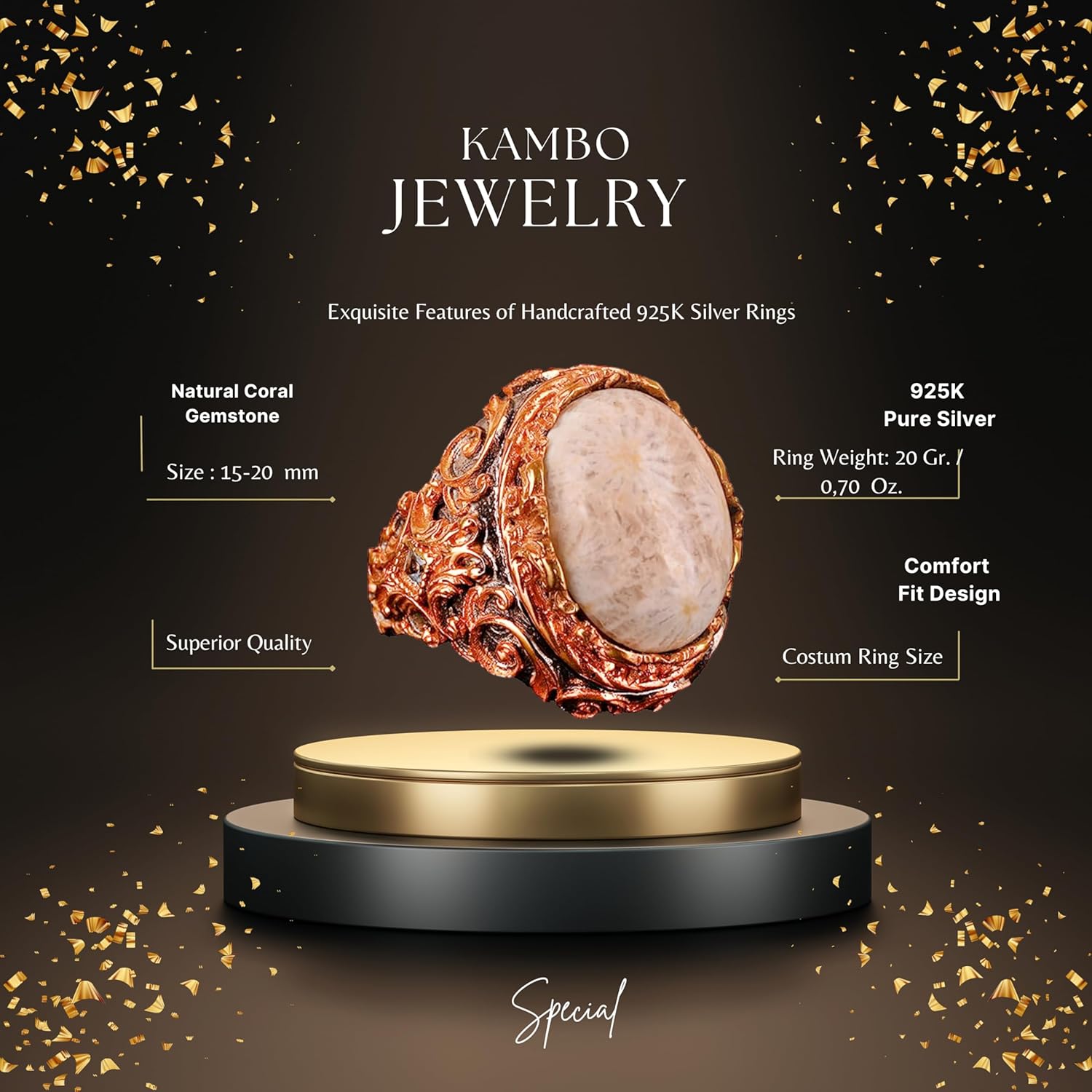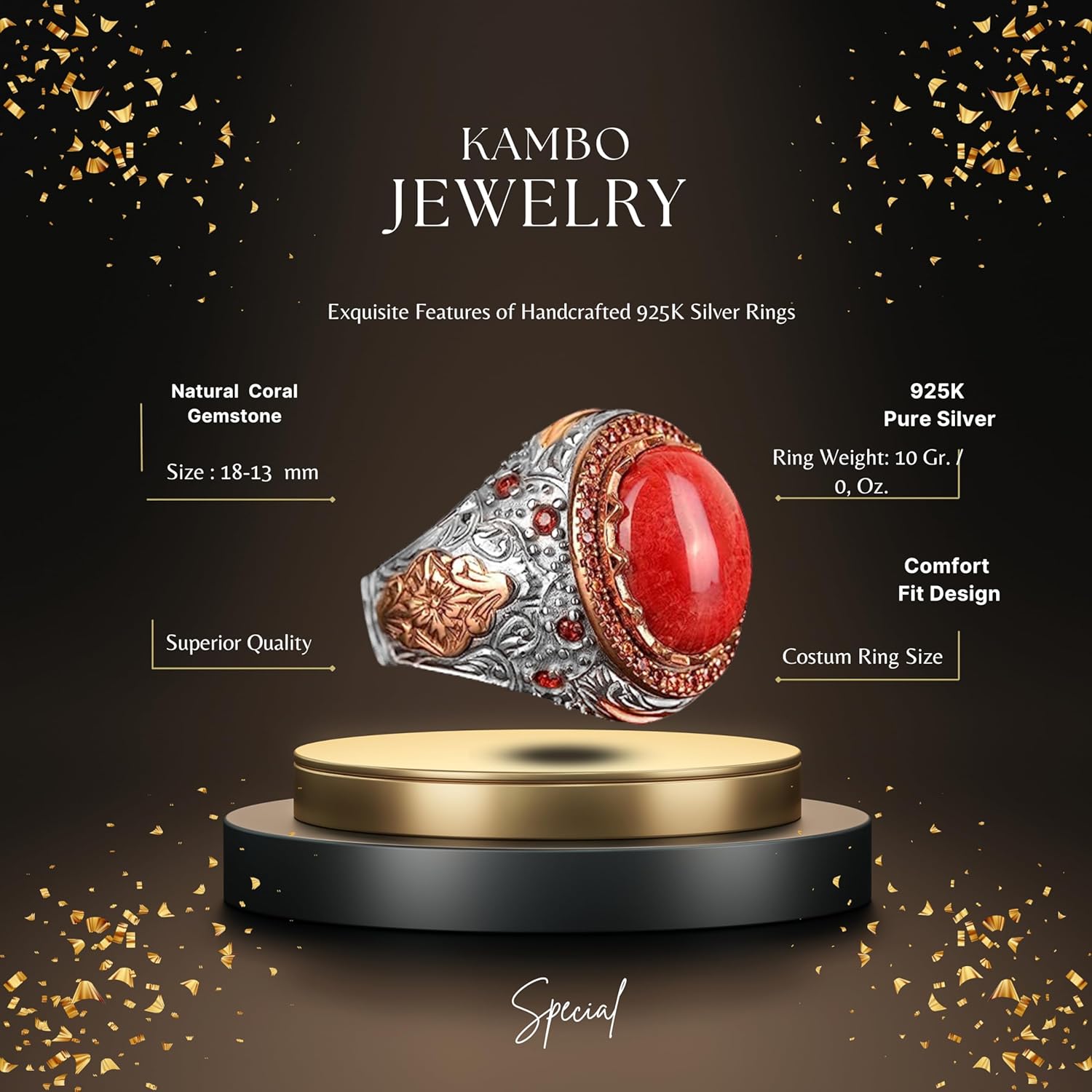 Gerçek Doğal Mercan Taşı Yüzük, Kral Yüzüğü, El Yapımı Yüzük, 925 Ayar Gümüş Yüzük Erkekler İçin