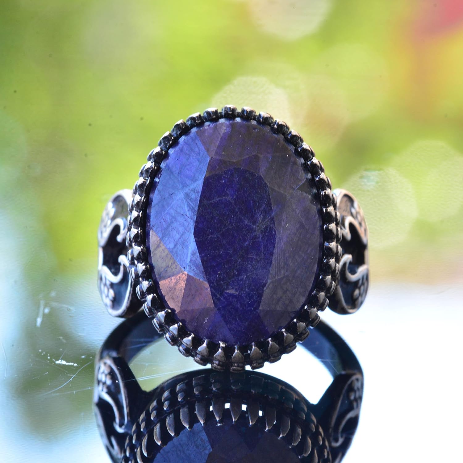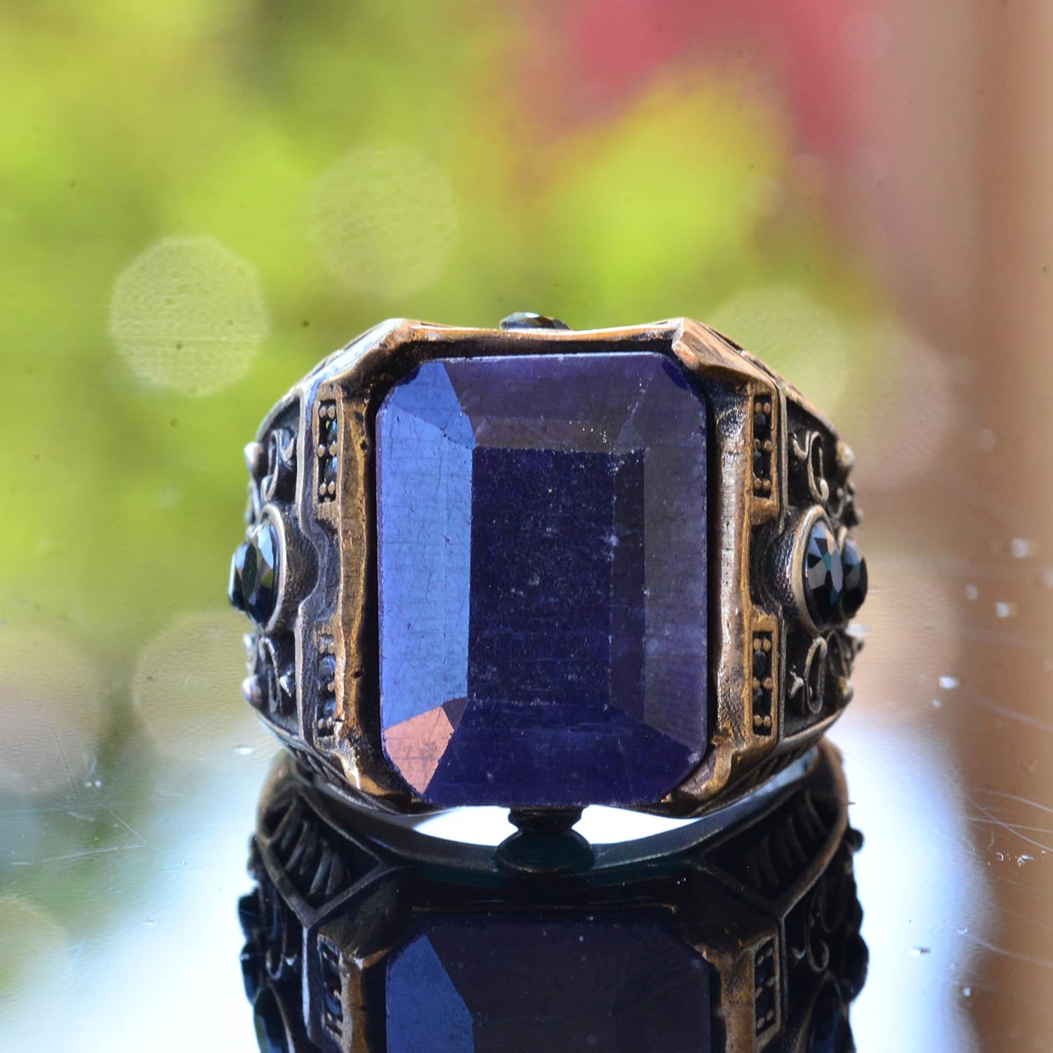 Gerçek Doğal Safir Taş Yüzük, El Yapımı Doğal Taş Takı, 925 Ayar Gümüş Yüzük erkekler için