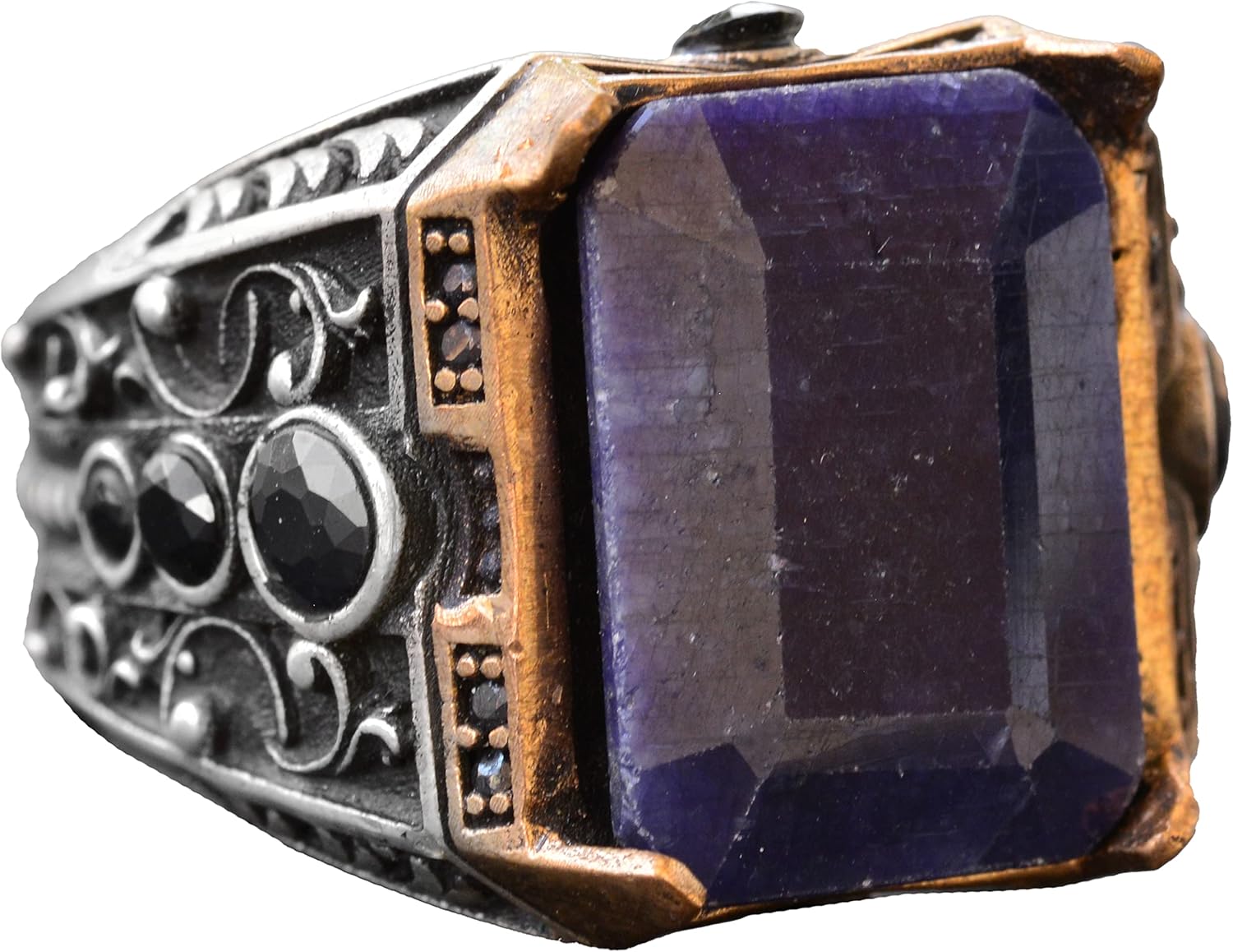 Gerçek Doğal Taş Yüzük, El Yapımı Takı, Büyük Yüzük, 925 Ayar Gümüş Yüzük Erkekler İçin