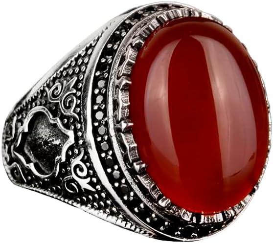 Gerçek Doğal Yemen Akik Taşı Yüzük, Kral Yüzüğü, El Yapımı Yüzük, 925 Ayar Gümüş Yüzük Erkekler İçin