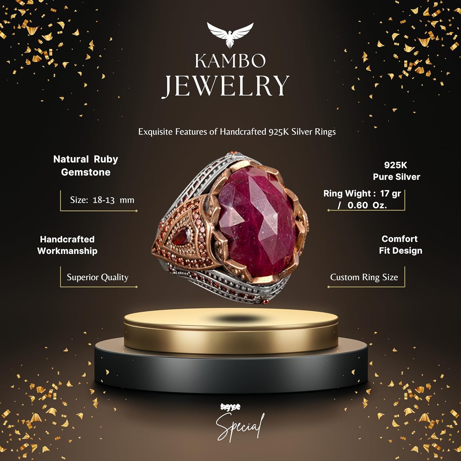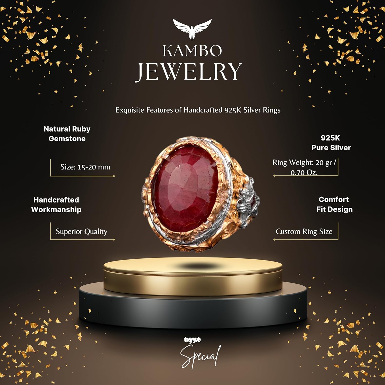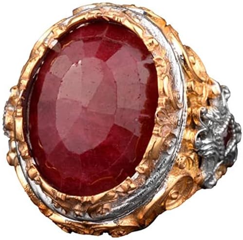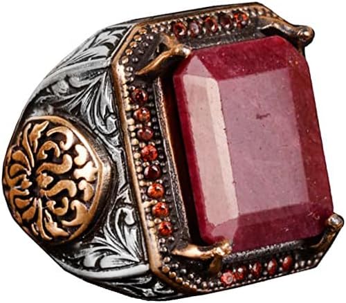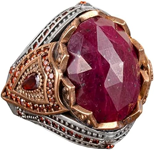 Gerçek Doğal Yakut Taşlı Erkek Yüzük, El Yapımı Kral Yüzüğü, 925 Ayar Gümüş Yüzük Erkekler İçin