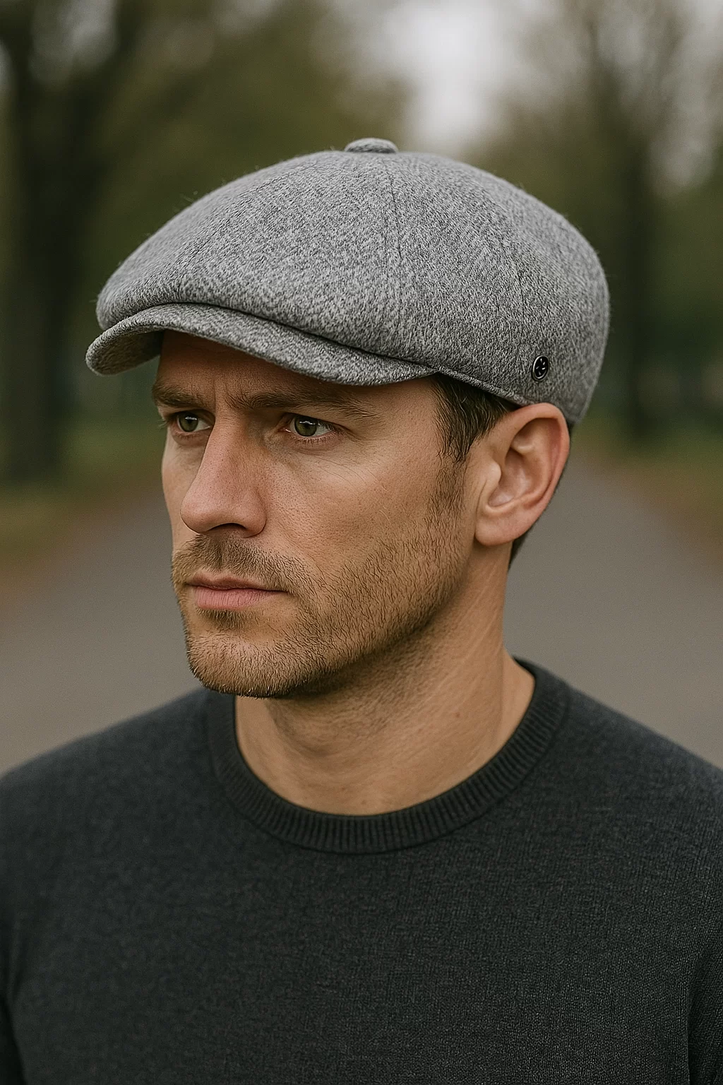 Gri Siyah Çizgili Yünlü Kaşe Kışlık Kumaş Erkek Kasket Şapka (Terletmez Dikişli Saten Astar)