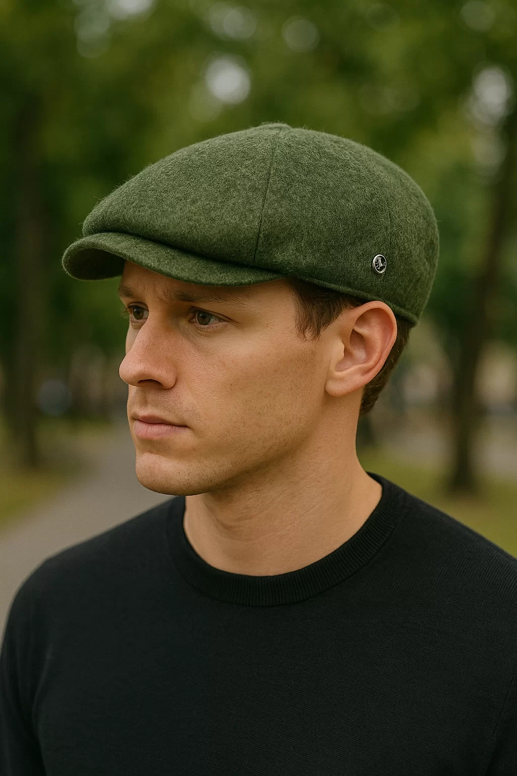 Haki Yünlü Kaşe Kışlık Kumaş Erkek Kasket Şapka (Terletmez Kapitone Dikişli Astar)