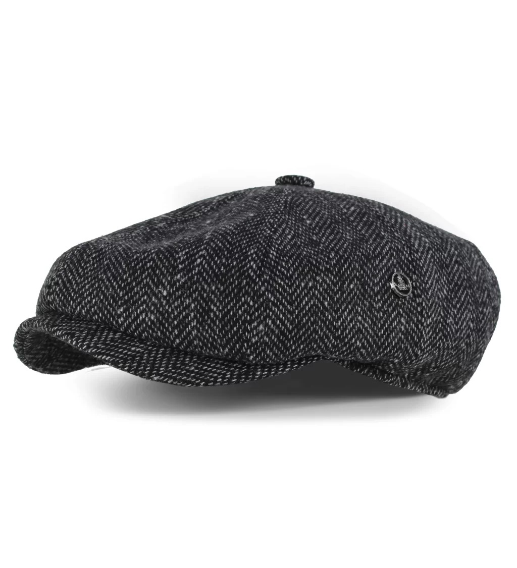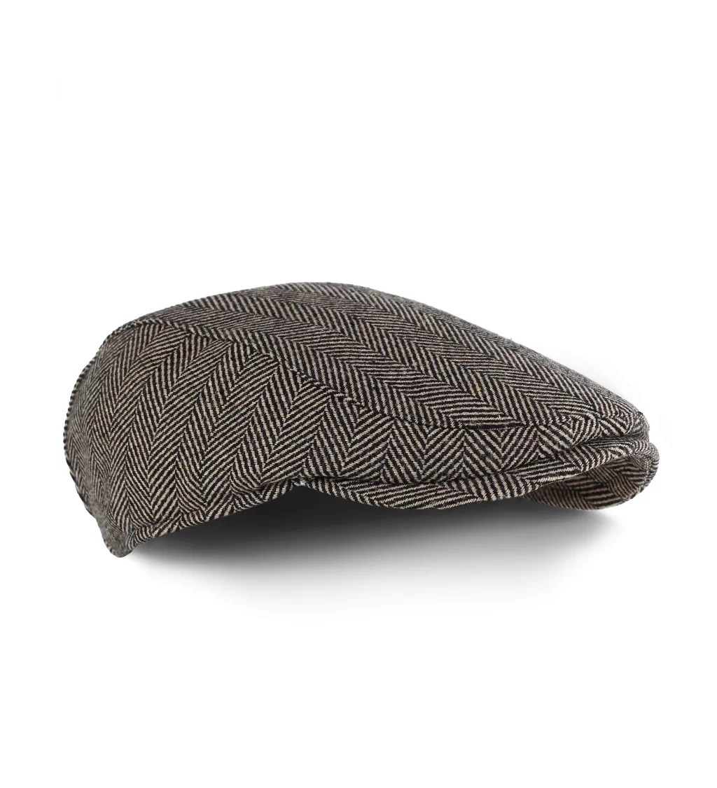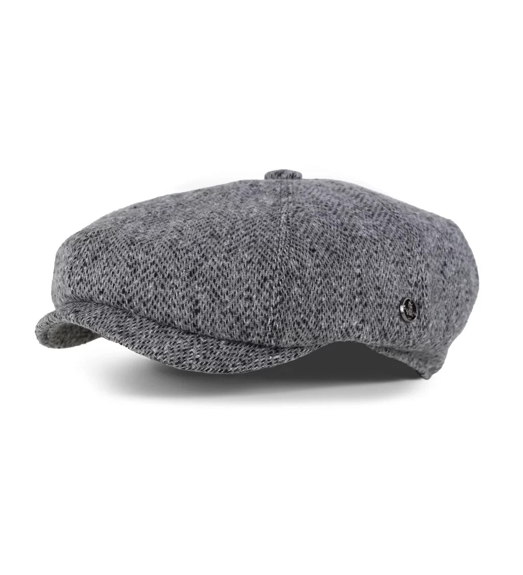 Gri Balık Sırtı Desenli Kaşe Kışlık Kumaş Erkek Kasket Şapka (Terletmez Astar)