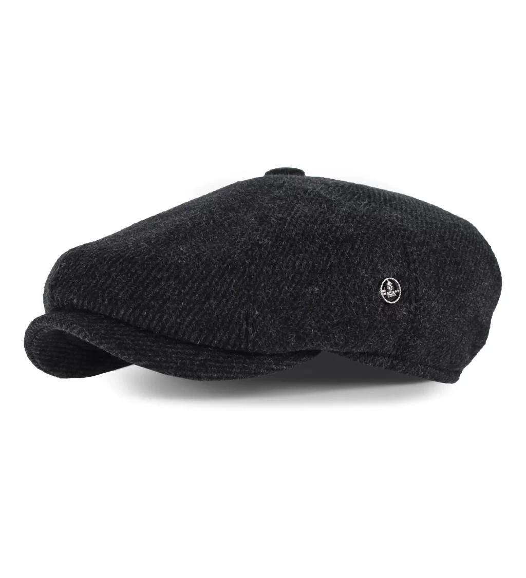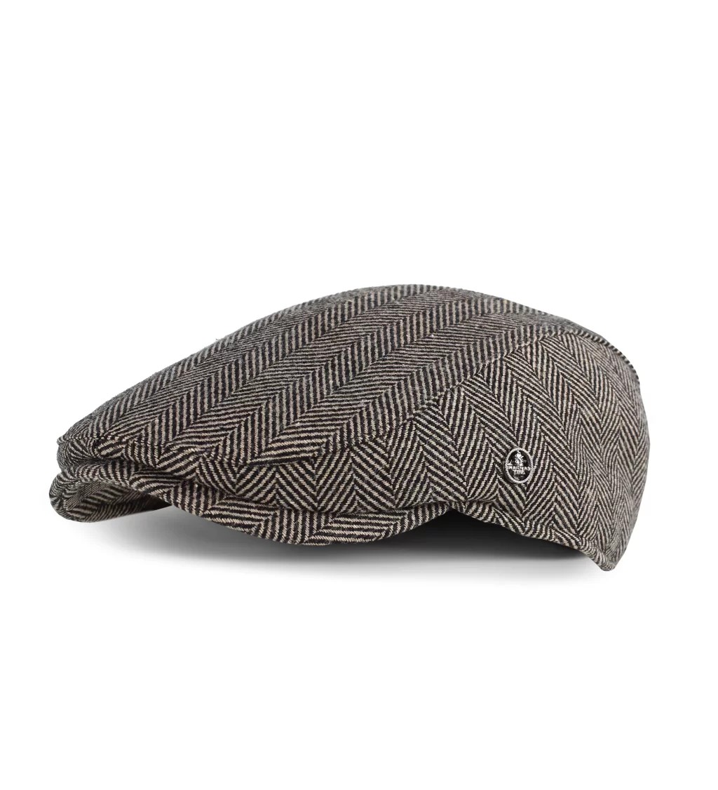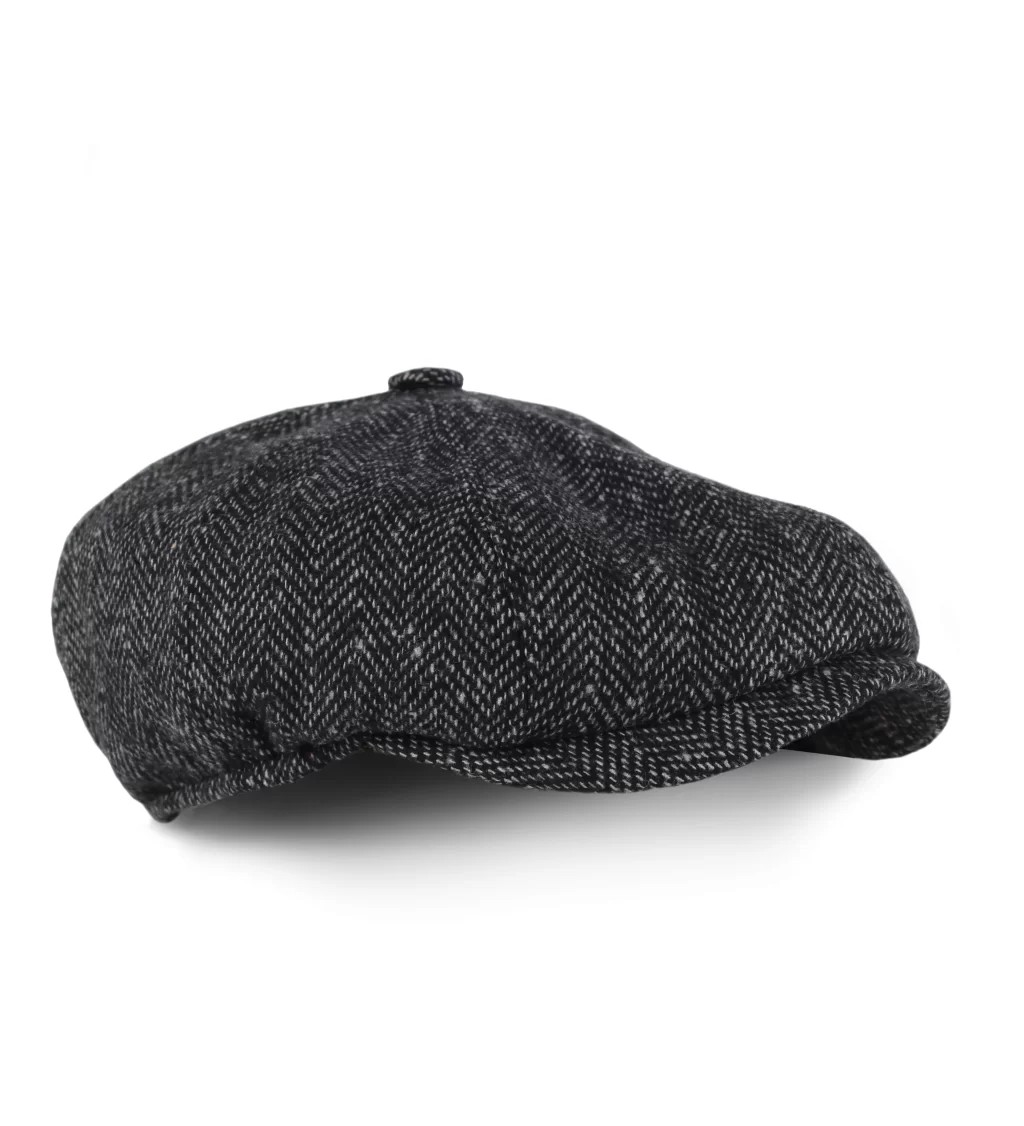 Gri Balık Sırtı Desenli Kaşe Kışlık Kumaş Erkek Kasket Şapka (Terletmez Astar)