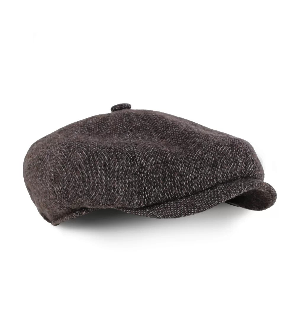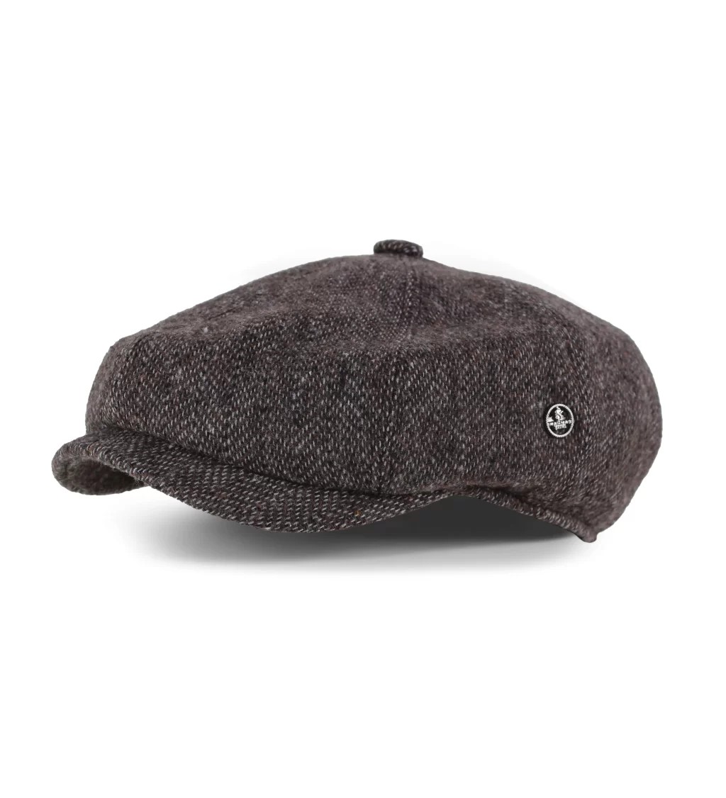 Kahverengi Balık Sırtı Desenli Kaşe Kışlık Kumaş Erkek Kasket Şapka (Terletmez Saten Astar)