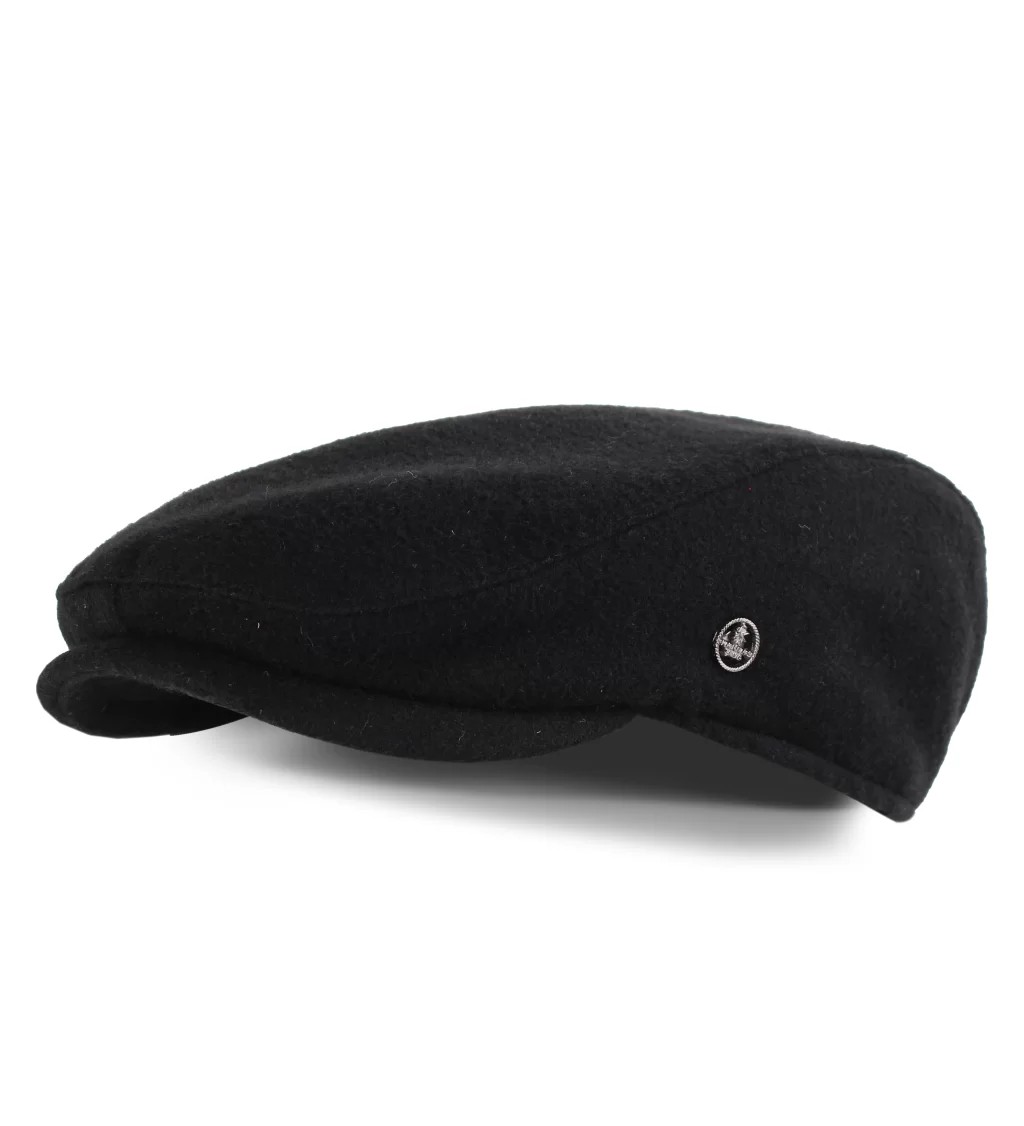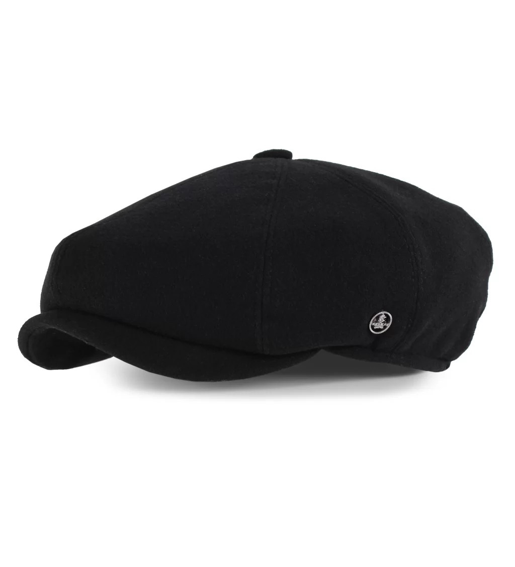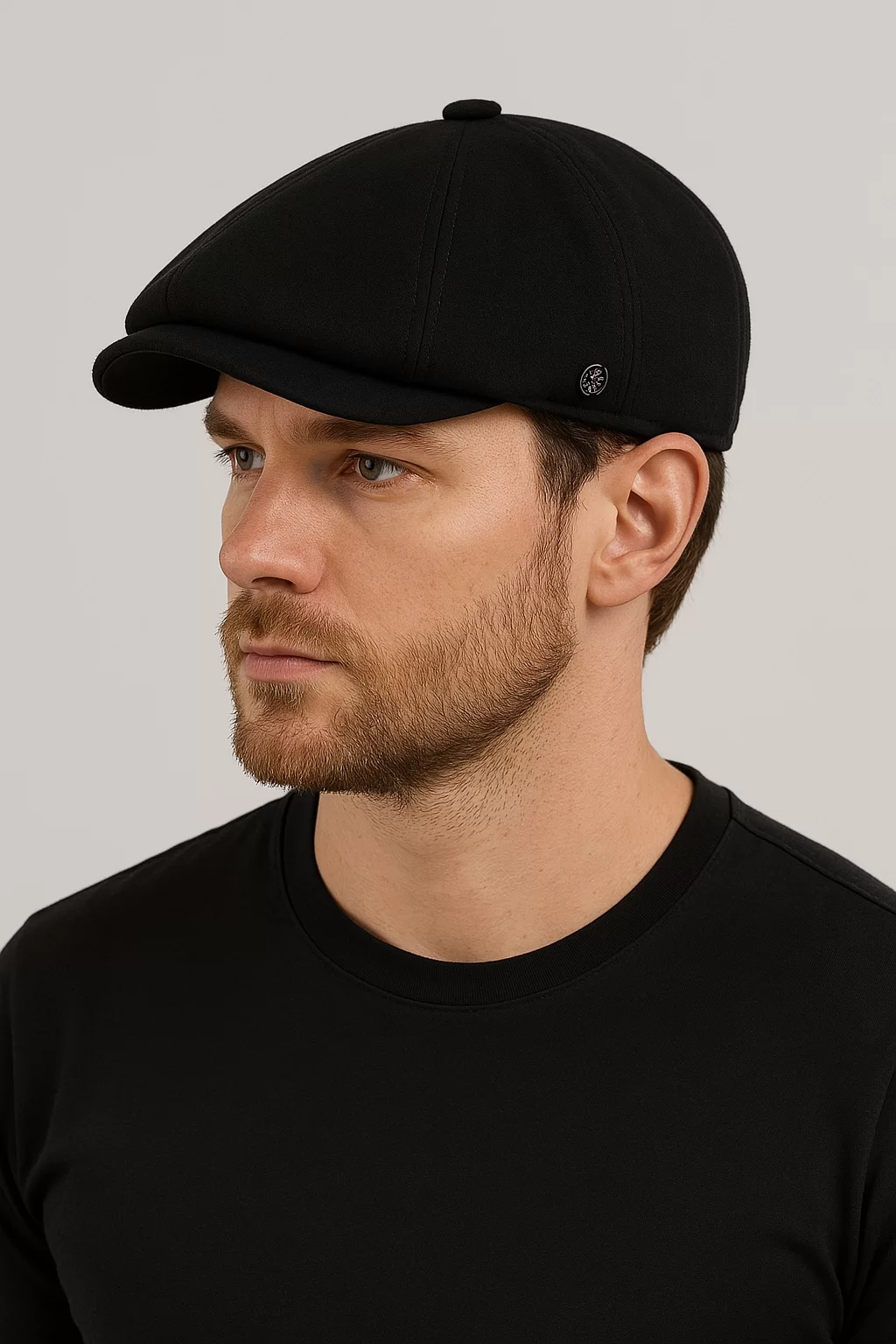 Siyah Yünlü Kaşe Kışlık Kumaş Tommy Shelby Kasket Şapka (Terletmez Saten Kapitone Dikişli Astar)