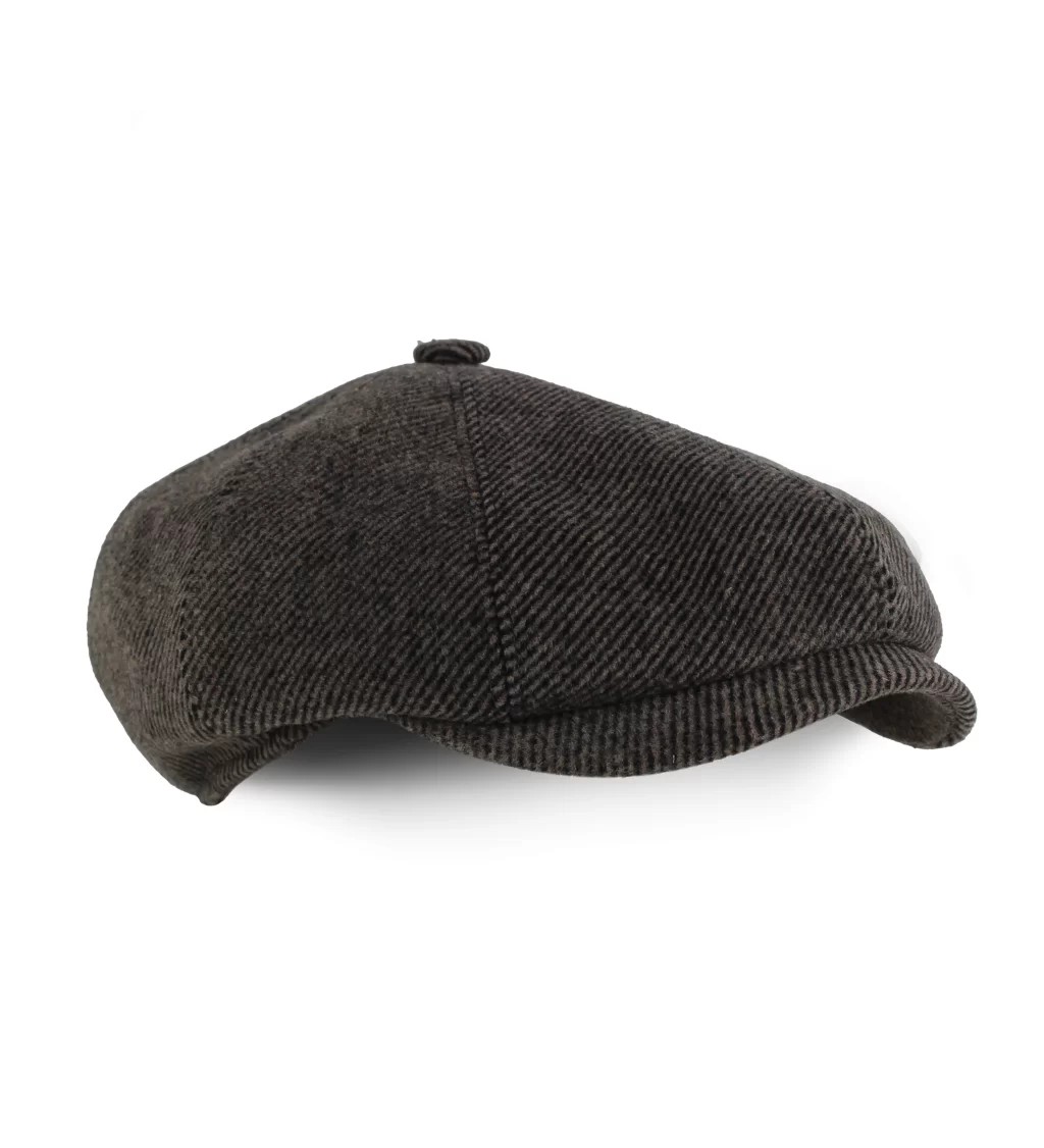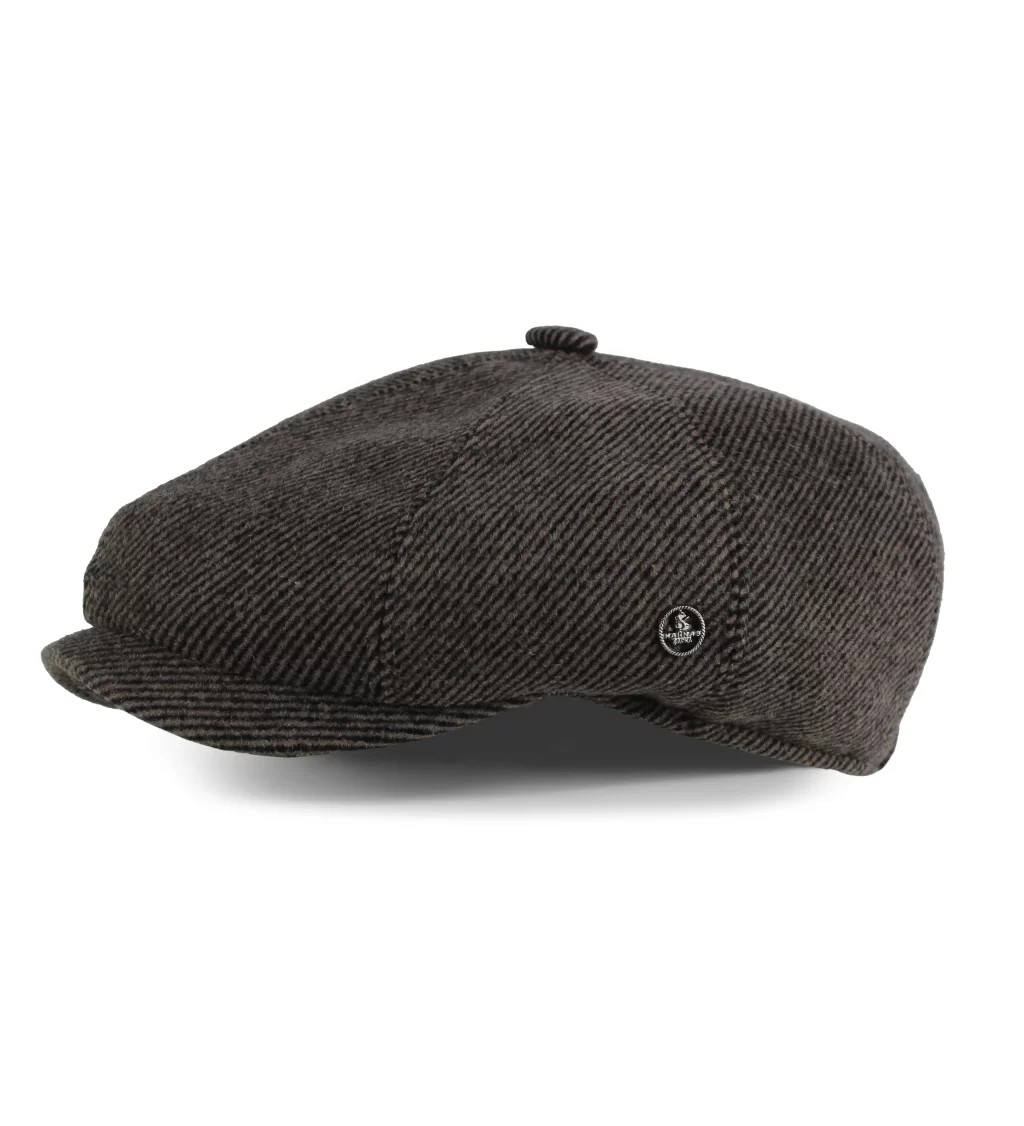Koyu Kahve Siyah Çizgili Yünlü Kaşe Kışlık Kumaş Erkek Kasket Şapka (Terletmez Saten Astar)