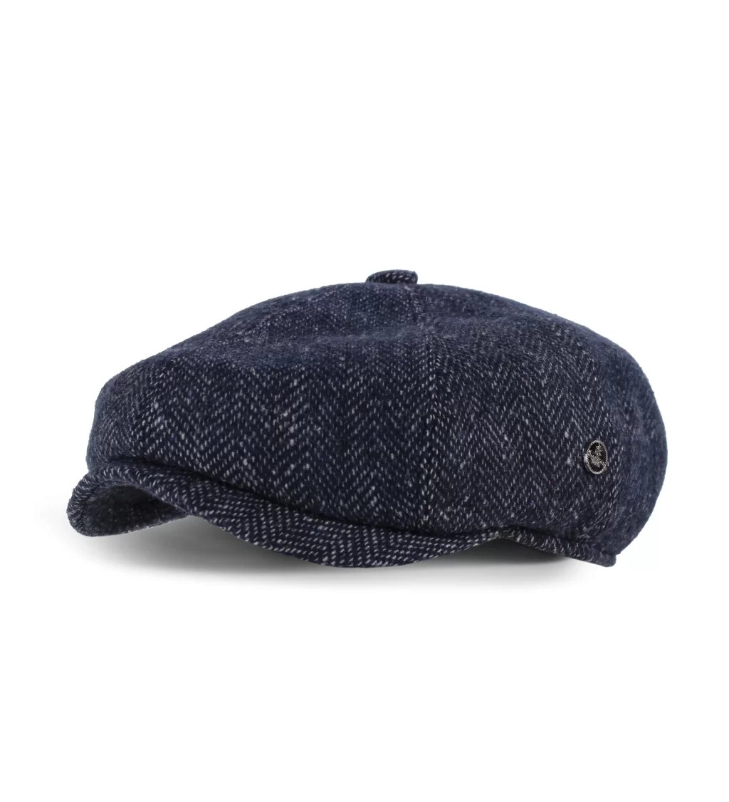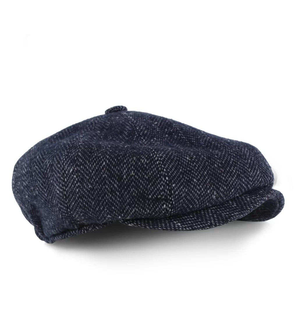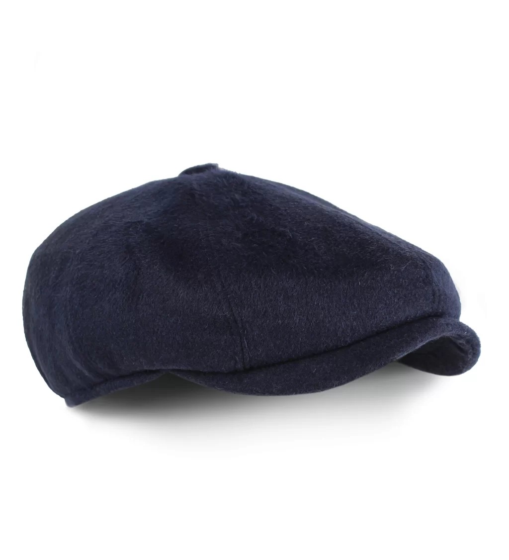 Lacivert Yünlü Kaşe Kışlık Kumaş Tommy Shelby Kasket Şapka (Terletmez Saten Kapitone Dikişli Astar)