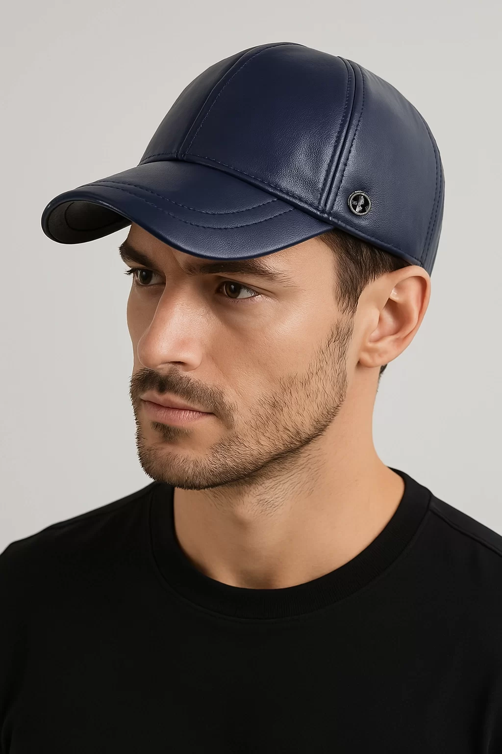 Lacivert Yünlü Kaşe Kışlık Kumaş Erkek Spor Şapka / Terletmez Saten Astar
