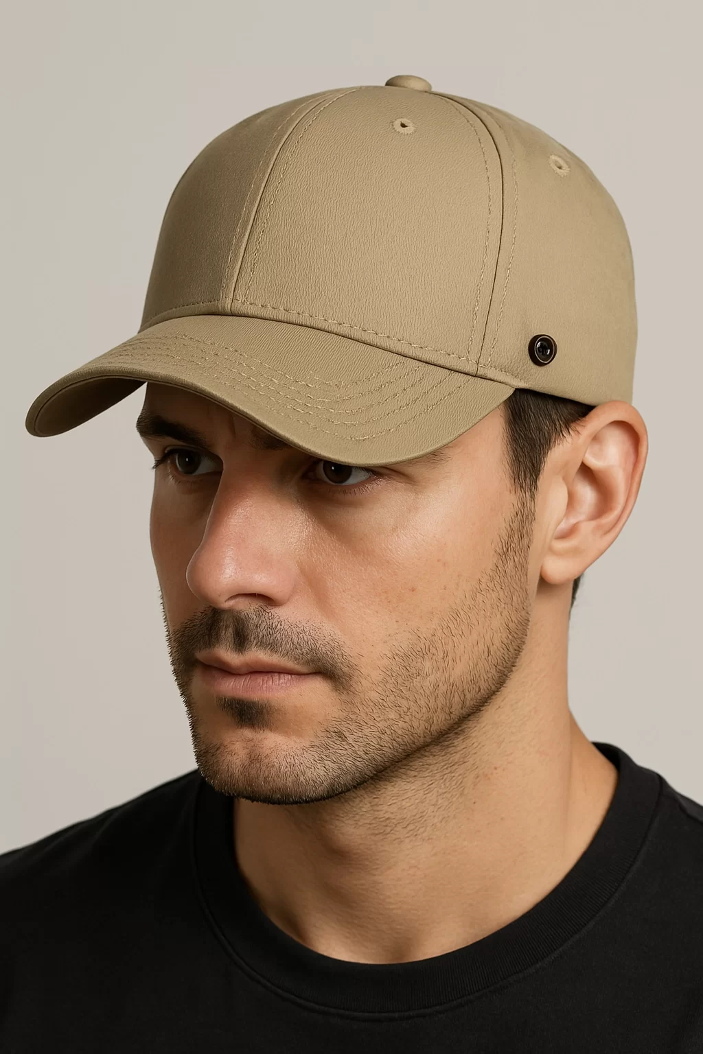 Bej Yünlü Kaşe Kışlık Kumaş Spor Şapka / Terletmez Saten Kapitone Dikişli Astar