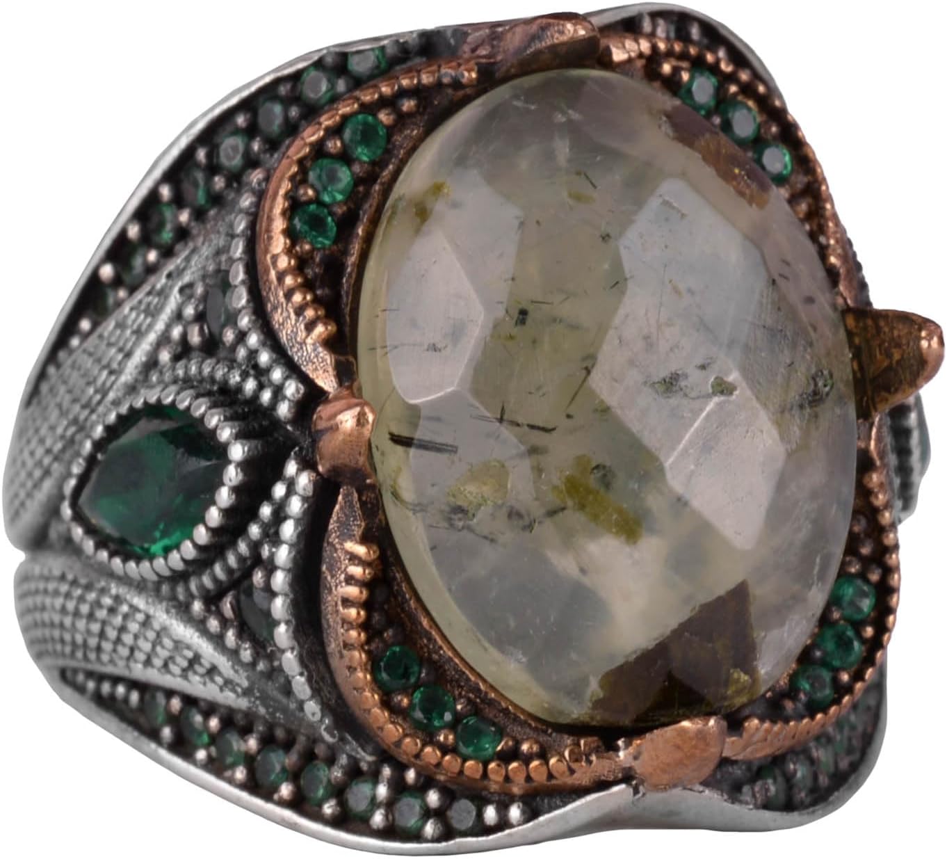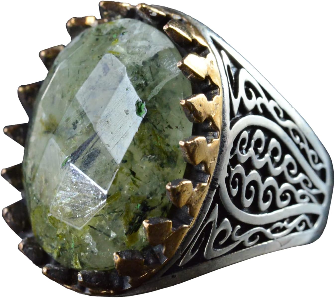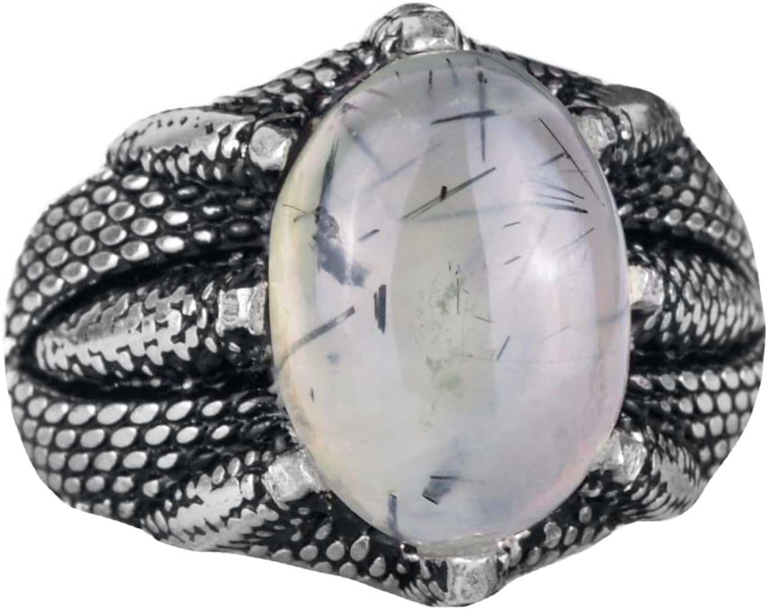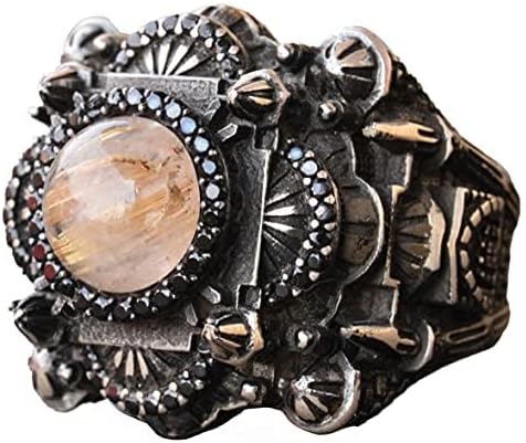 Gerçek Doğal Rutilatlı Kuvars Taşı Yüzük, 925 Ayar Gümüş Yüzük Erkekler İçin, Sultan Erkek Yüzüğü