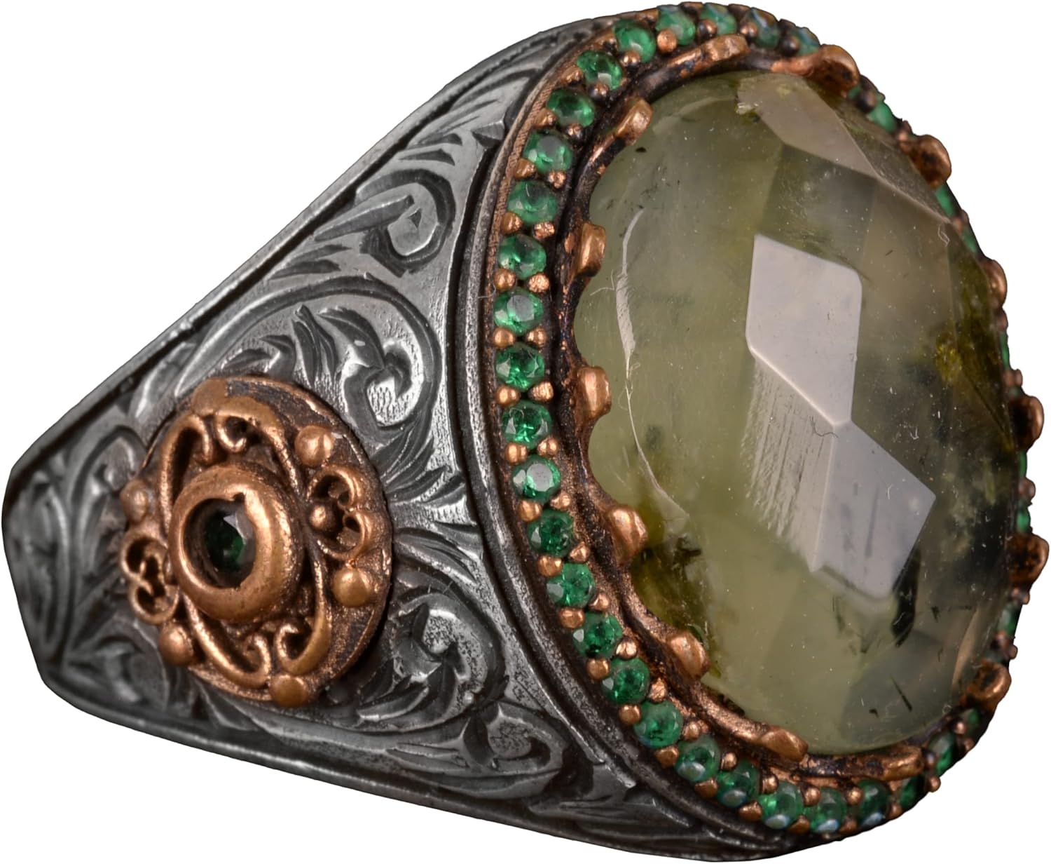 Gerçek Doğal Prehnit Taşı Yüzük, El Yapımı 925 Ayar Gümüş Erkek Yüzük Yeşil Aksanlarla