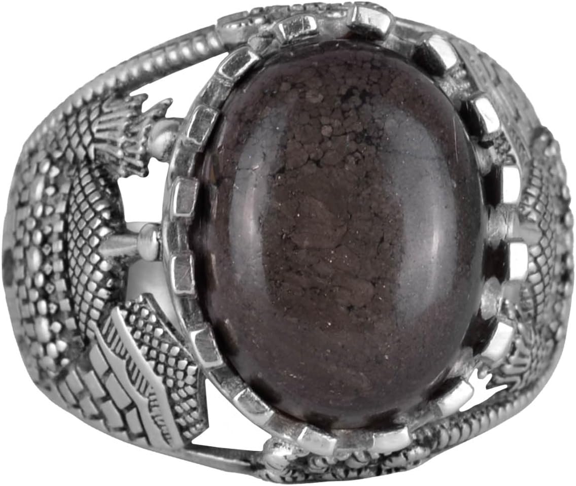 Gerçek Doğal Rodonit Taş Yüzük, Gümüş Süleyman Mühürü Yüzüğü, 925 Ayar Katı Gümüş Erkek Yüzüğü