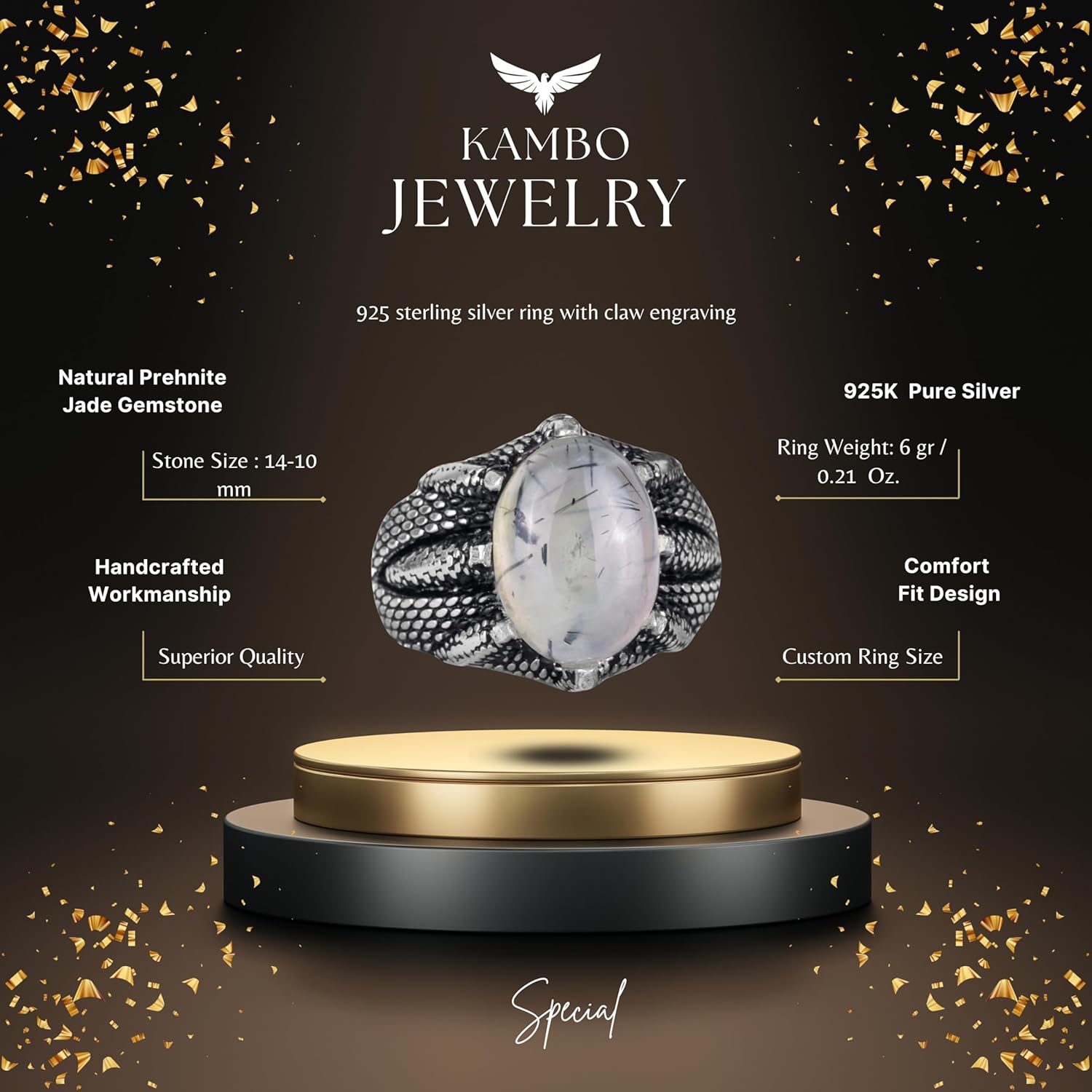 Gerçek Doğal Prehnit Yeşim Taşı ile Sterlin Gümüş Pençe Yüzük – Terazi için El Yapımı Yüzük, Barış ve Spiritüel Bağlantı