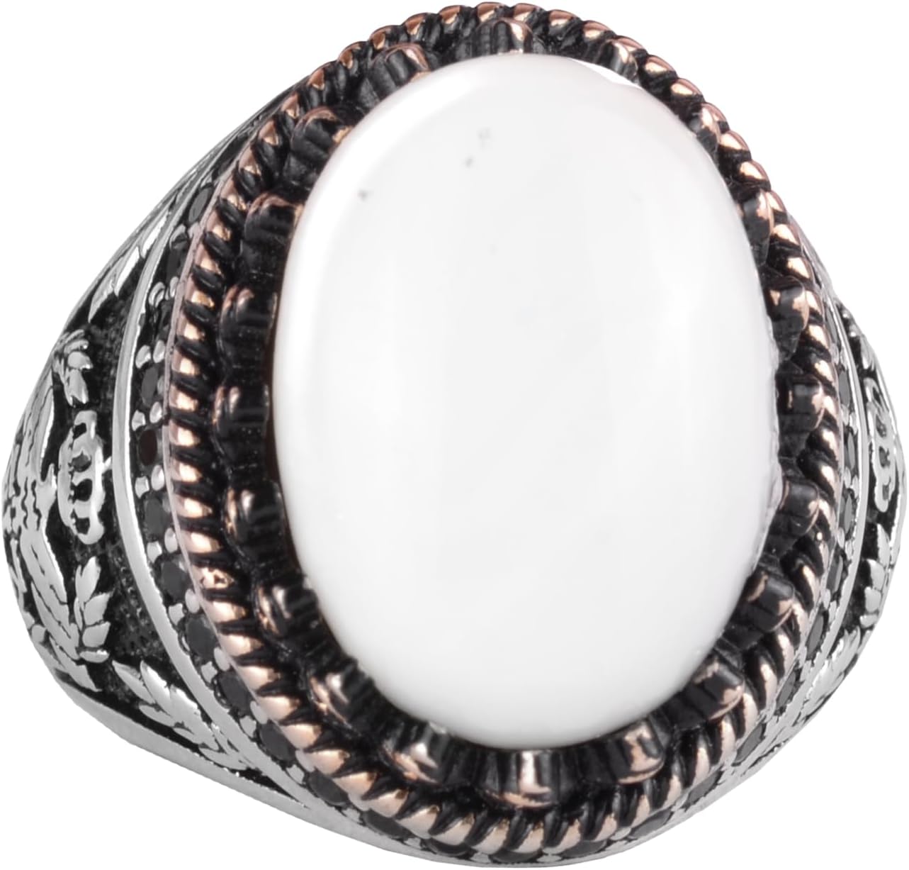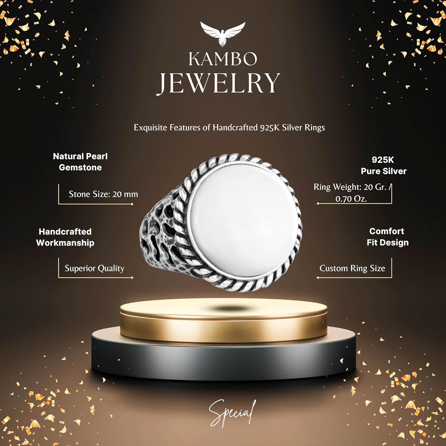 Gerçek Doğal Sedef Taş Yüzük - 925 Ayar Gümüş Büyük Yüzük - El Yapımı Yüzük