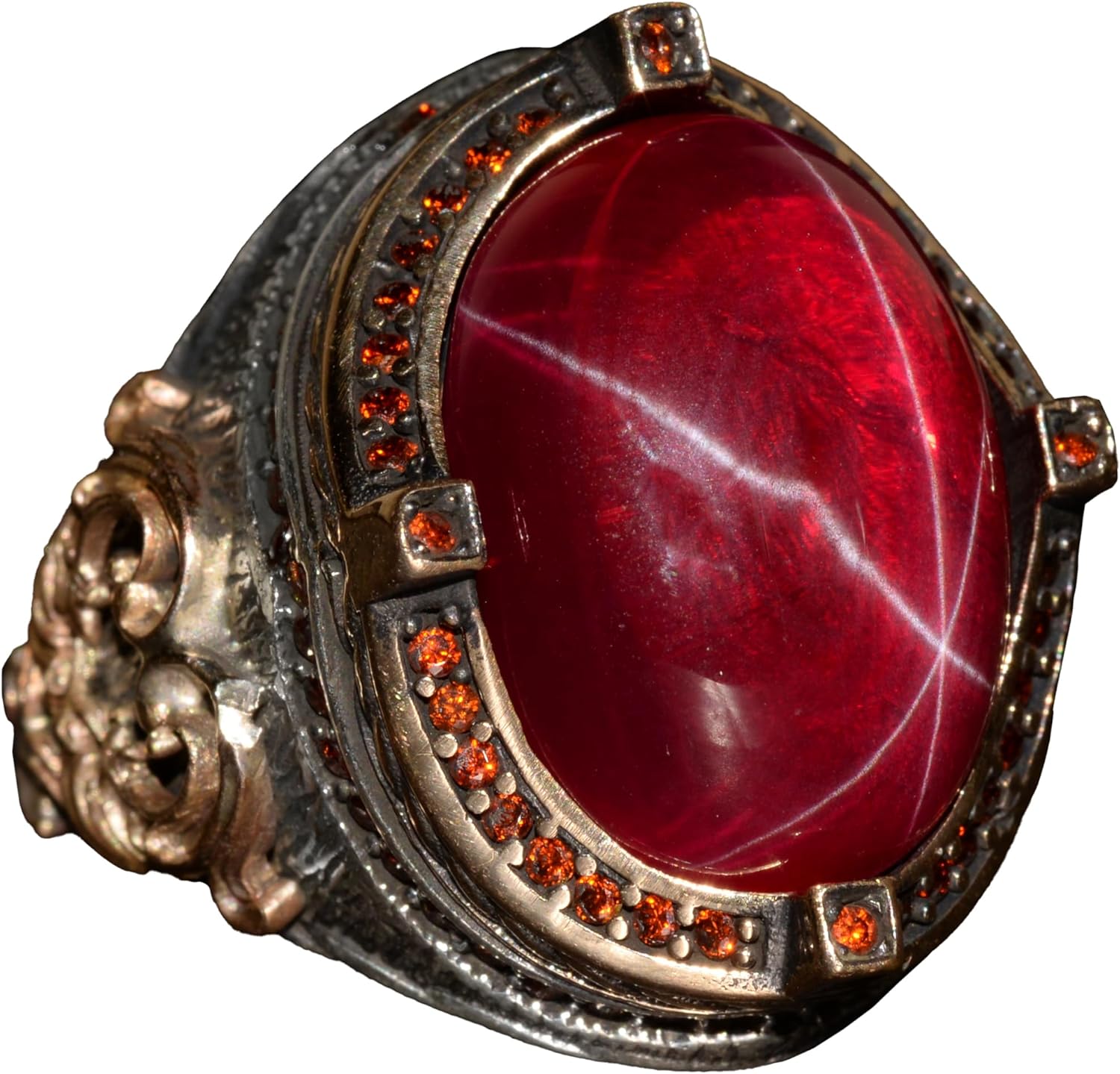 Gerçek Doğal Star Ruby Taşlı Yüzük, Sultan Yüzüğü, El Yapımı Kral Yüzüğü, 925 Ayar Gümüş Yüzük Erkekler İçin