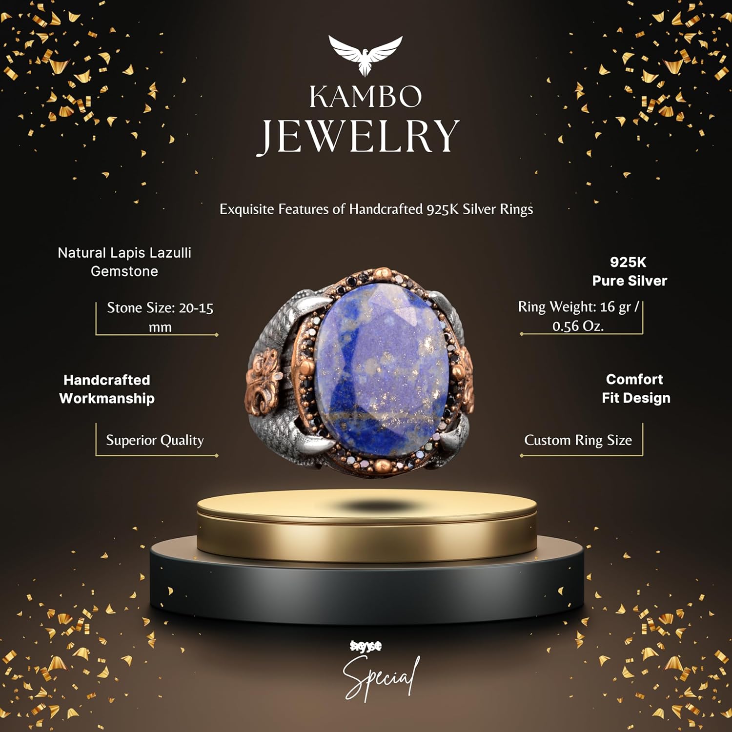 Gerçek Doğal Sodalit Taşı Yüzük, Şahin Pençesi Yüzük, 925 Ayar Gümüş Erkek Yüzük