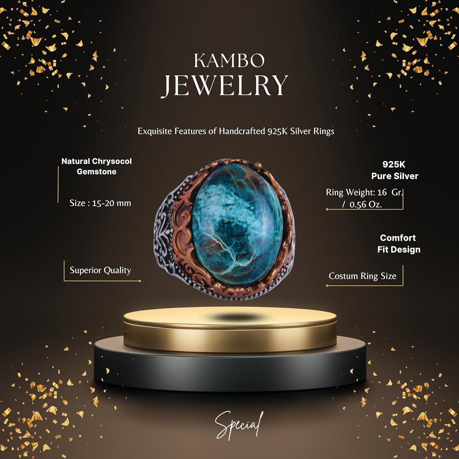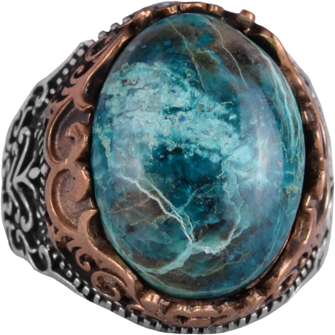 Gerçek Doğal Taş El Yapımı Yüzük - 925 Ayar Gümüş El Yapımı Yüzük - Şık Yüzük (Krisokolla)