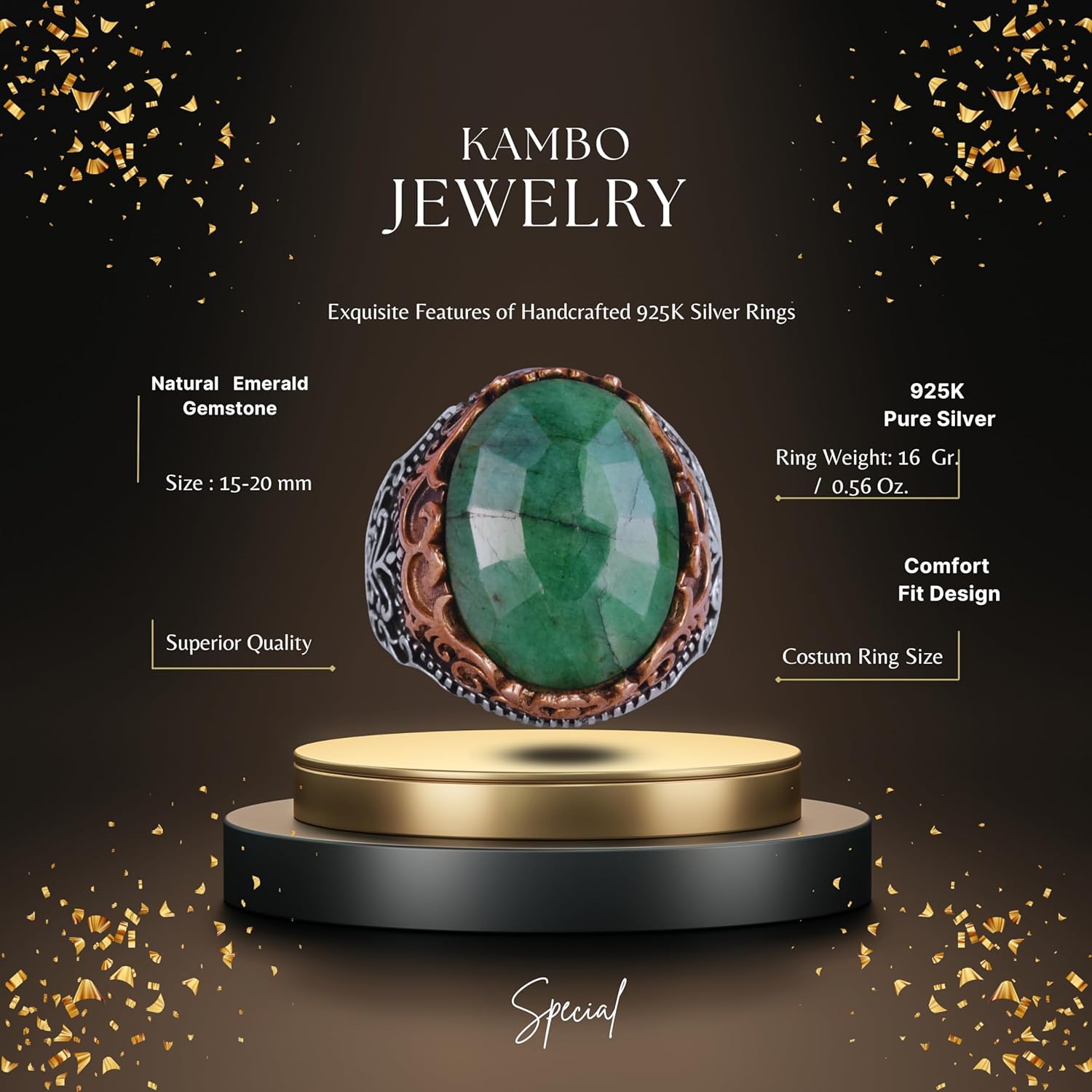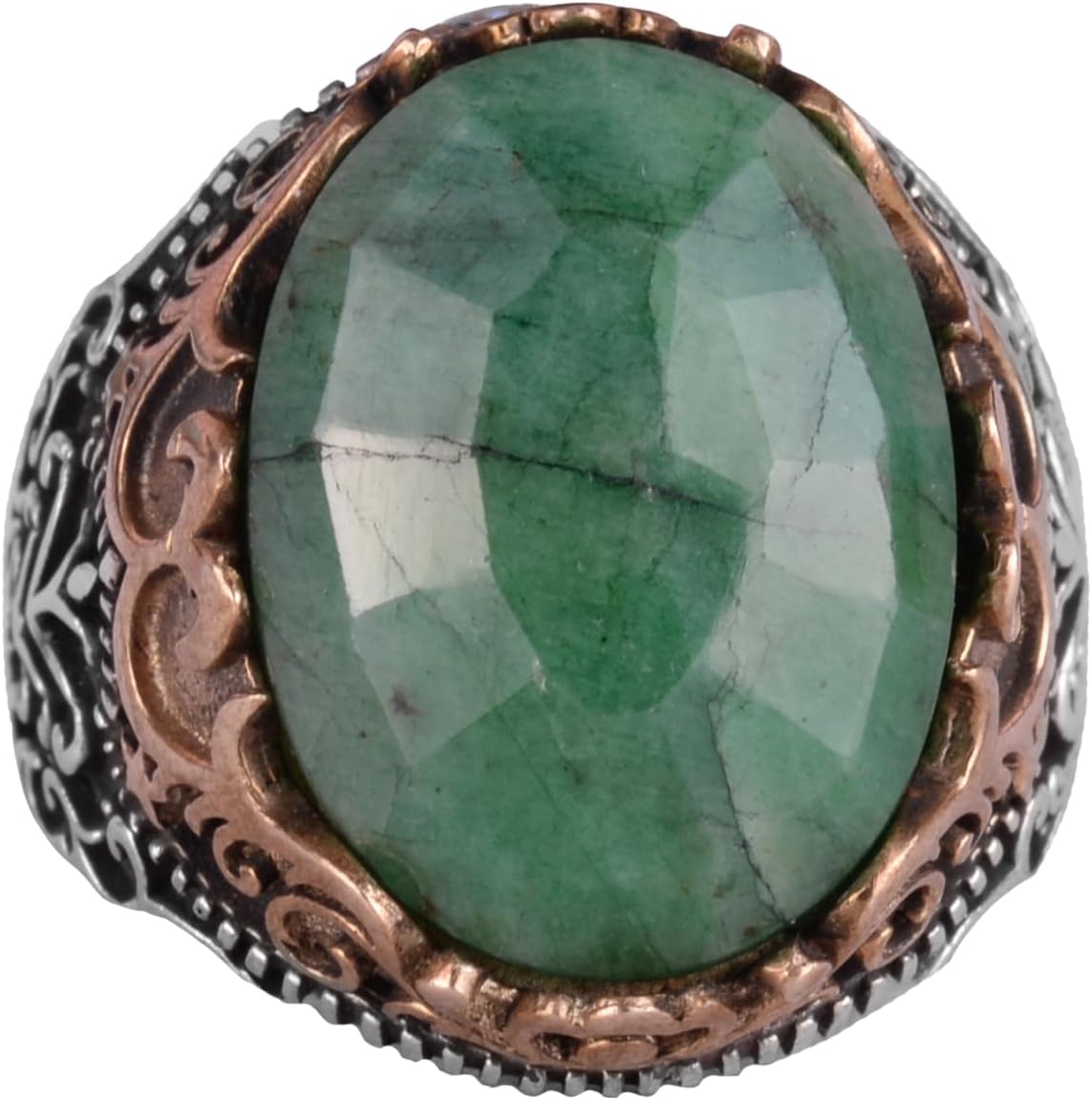 Gerçek Doğal Taş El Yapımı Yüzük - 925 Ayar Gümüş El Yapımı Yüzük - Şık Yüzük (Zümrüt)