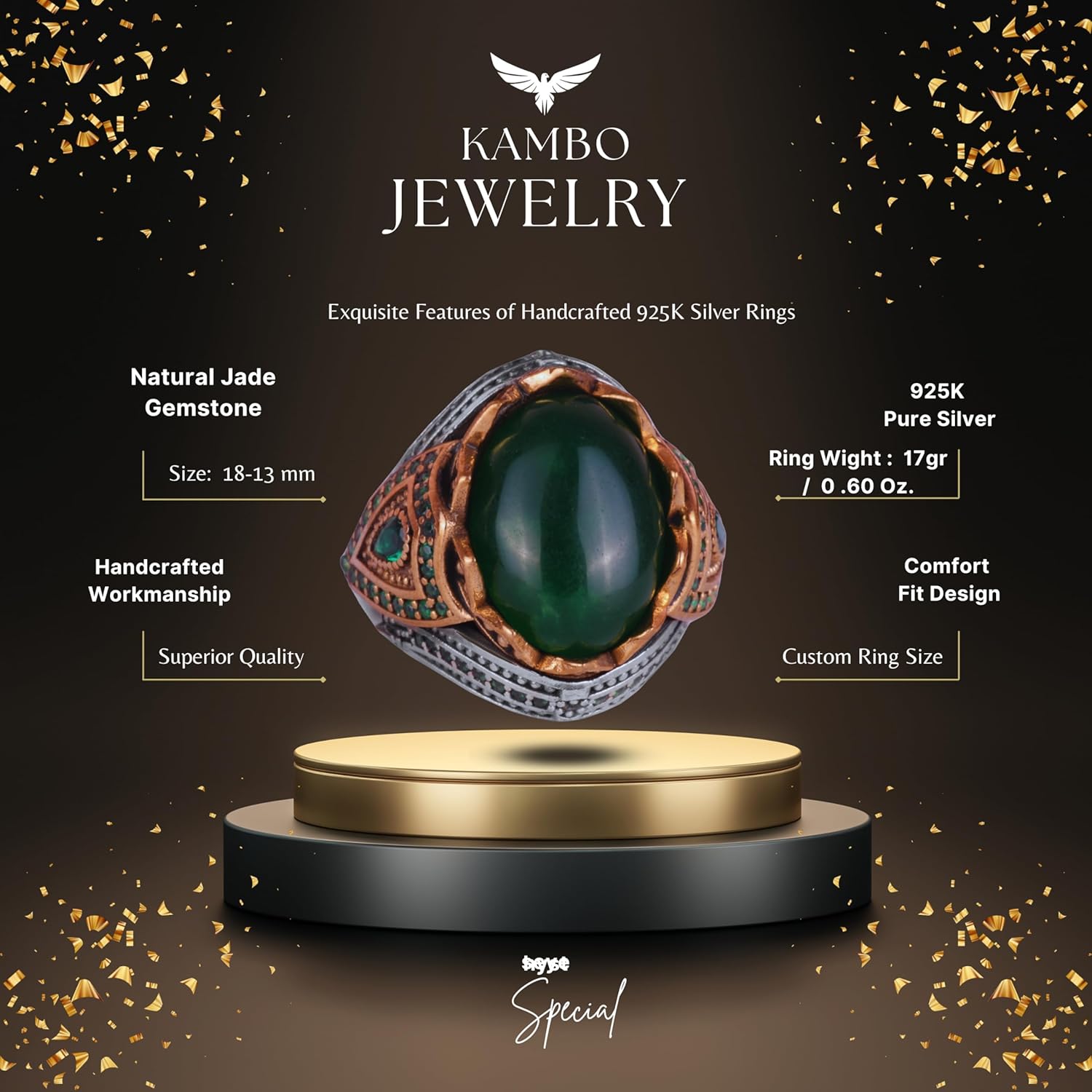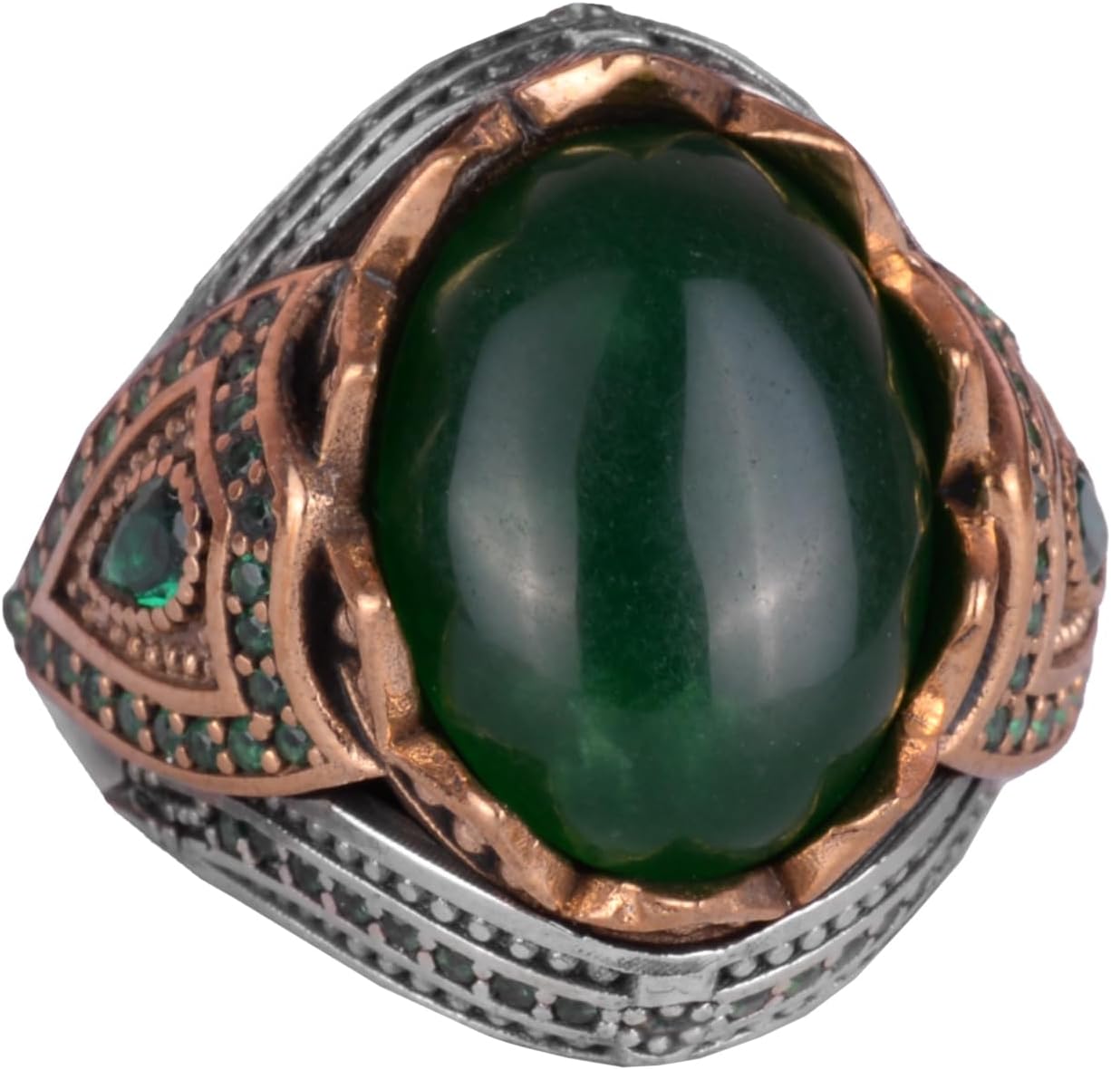 Gerçek Doğal Taş El Yapımı Yüzük - 925 Ayar Gümüş Şık Yüzük (Jade)