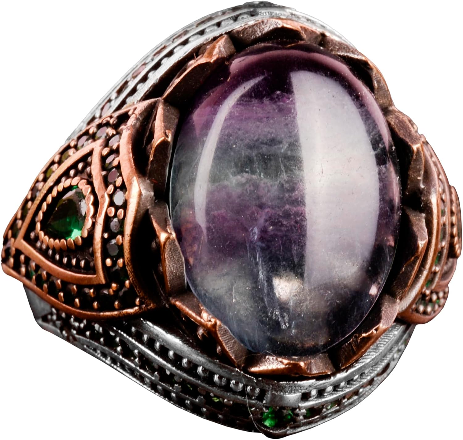 Gerçek Doğal Taş El Yapımı Yüzük - 925 Ayar Gümüş Şık Yüzük (Fluorite)
